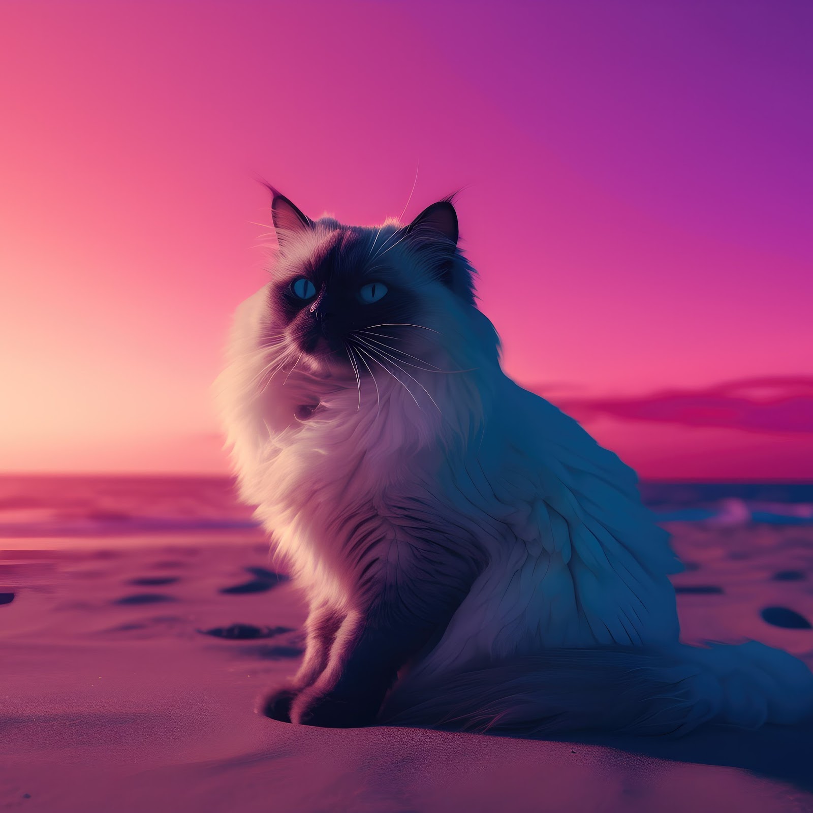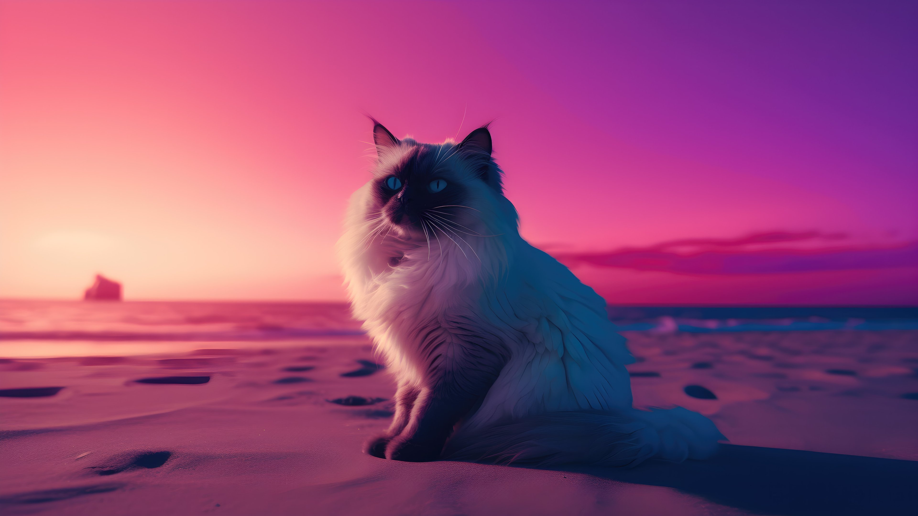 Cat Synthwave 4K Desktop Wallpaper Background with a maximum resolution of 3840x2160 px.
