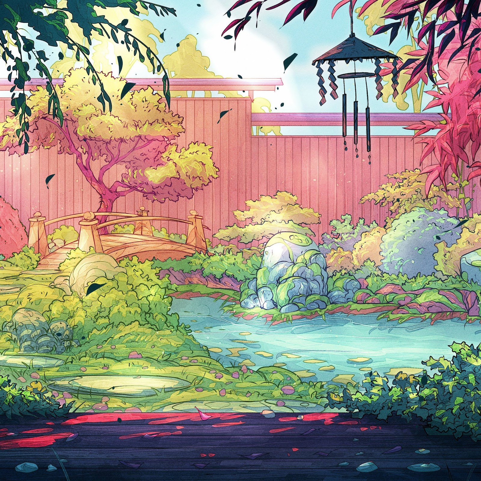 Christian Benavides, Digital Art, Fantasy Art, Wind Chimes, Asian Architecture 4K Desktop Wallpaper