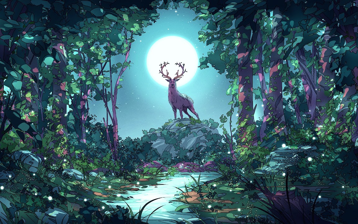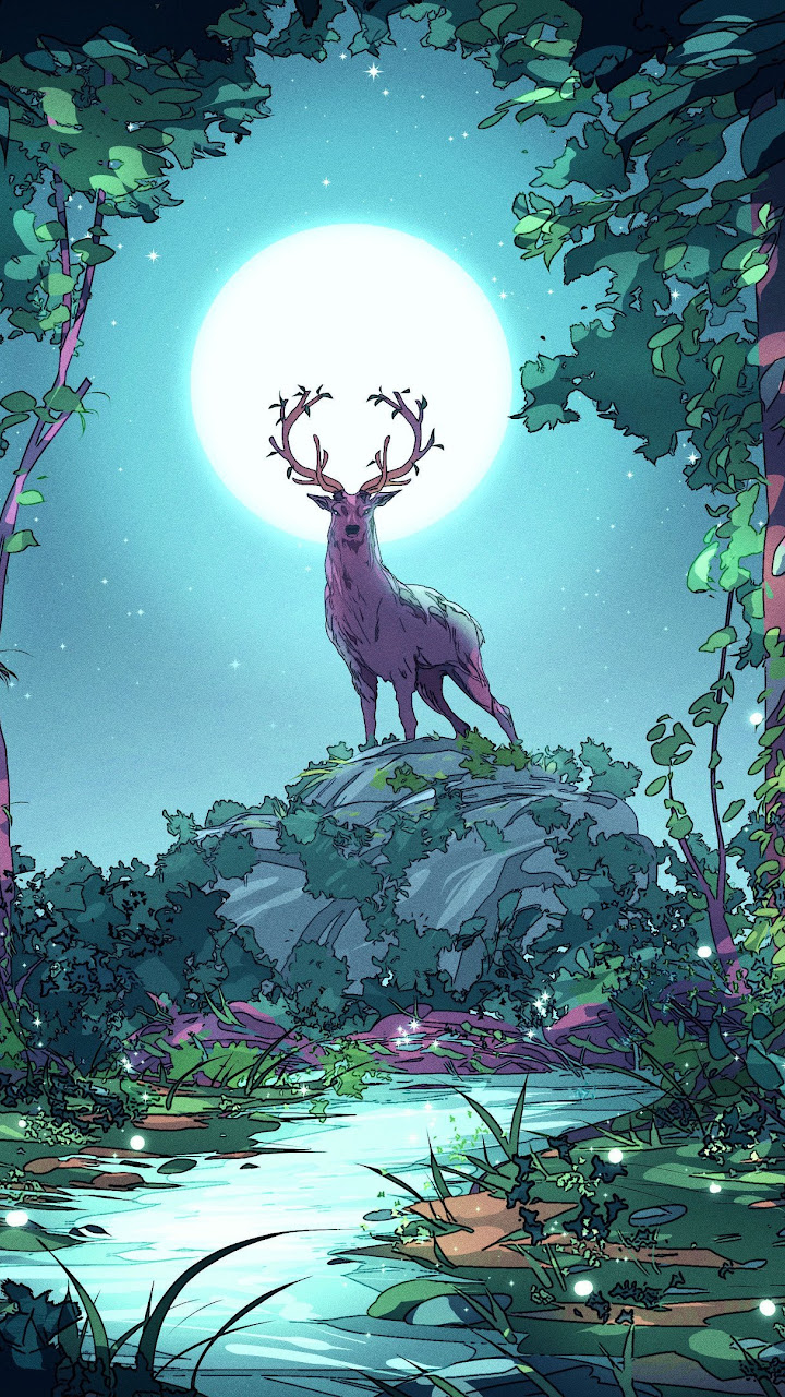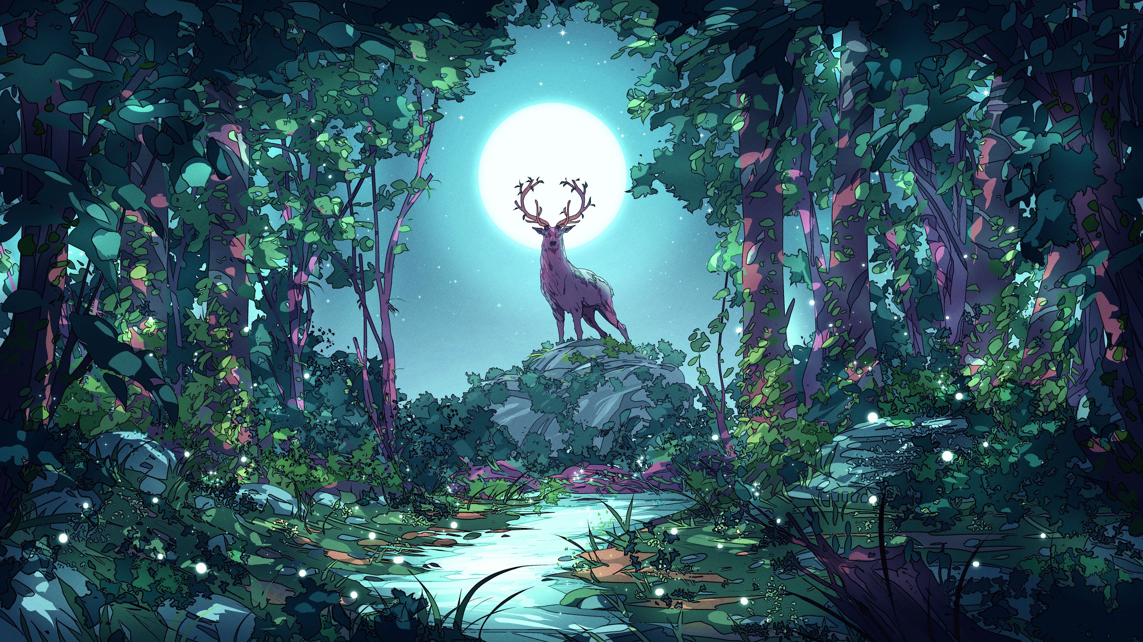 Christian Benavides, Digital Art, Fantasy Art, Deer, Moon 4K Desktop Wallpaper Background with a maximum resolution of 3840x2160 px.
