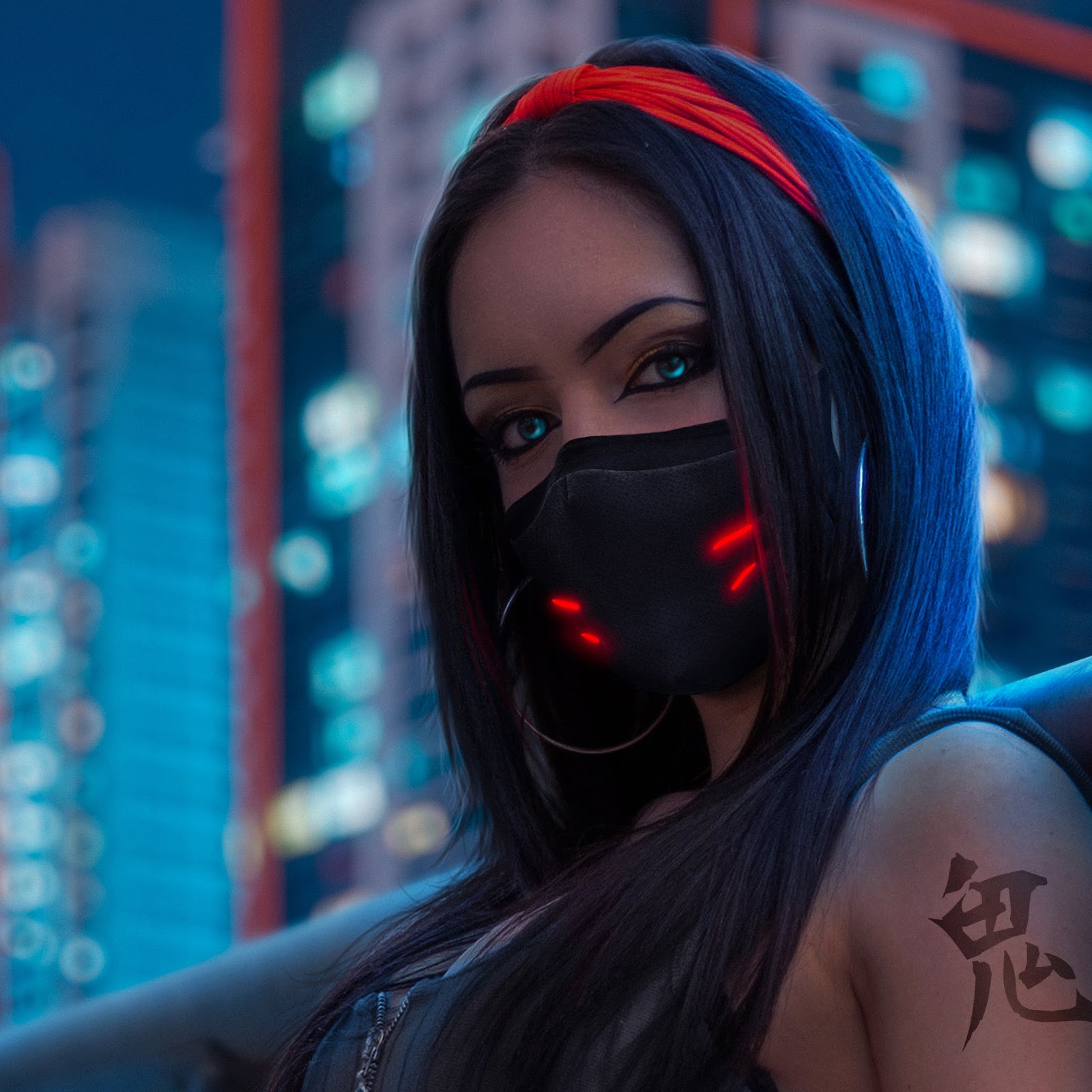 Cyberpunk, Futuristic, Woman, Tattoo 4K Wallpaper Background with a maximum resolution of 3840x2160 px.