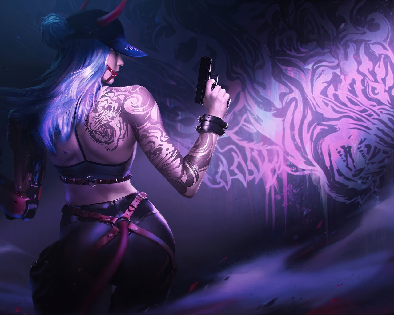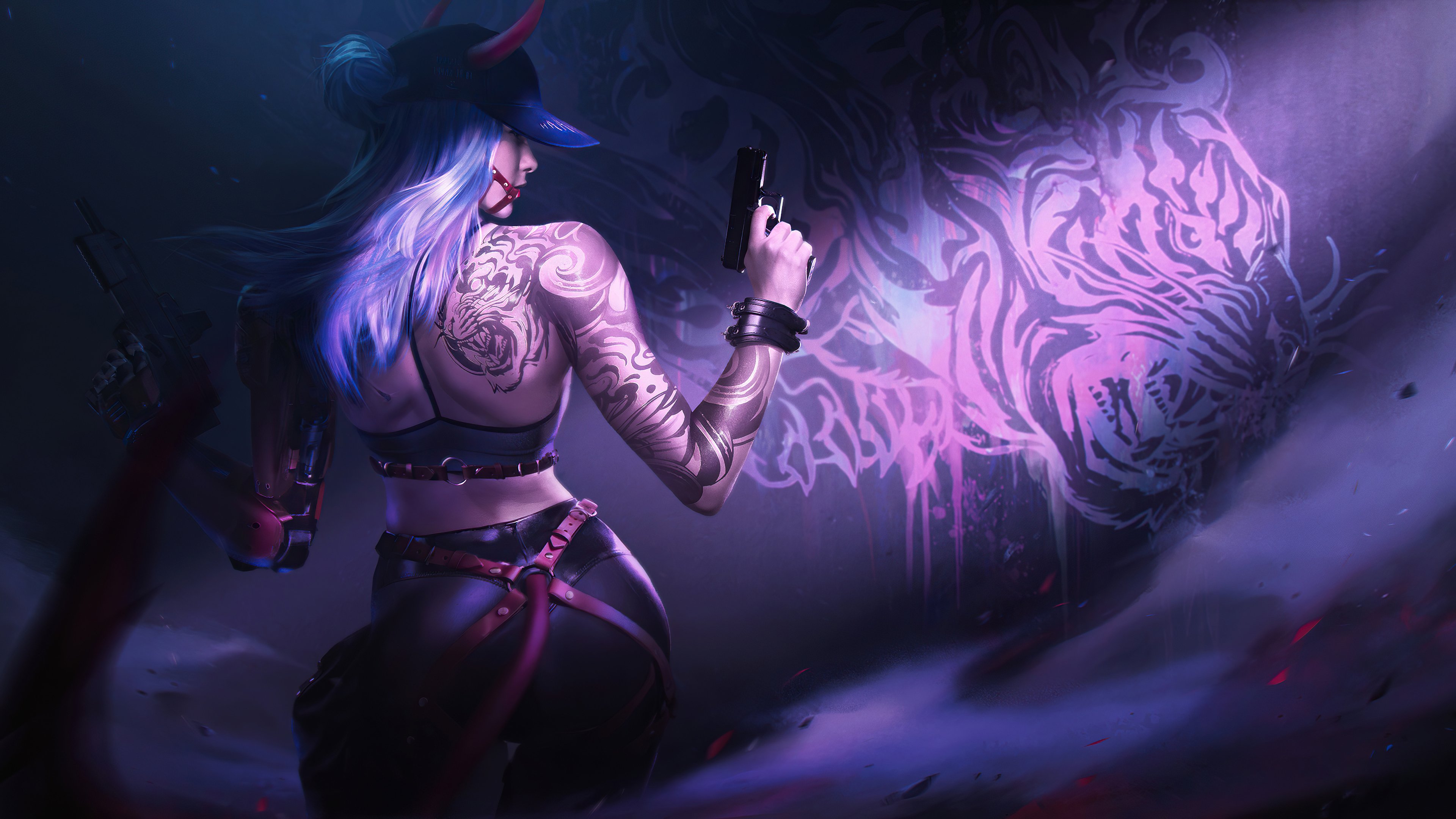 Cyberpunk, Tattoo, Guns, Tiger, Anime 4K Desktop Wallpaper
