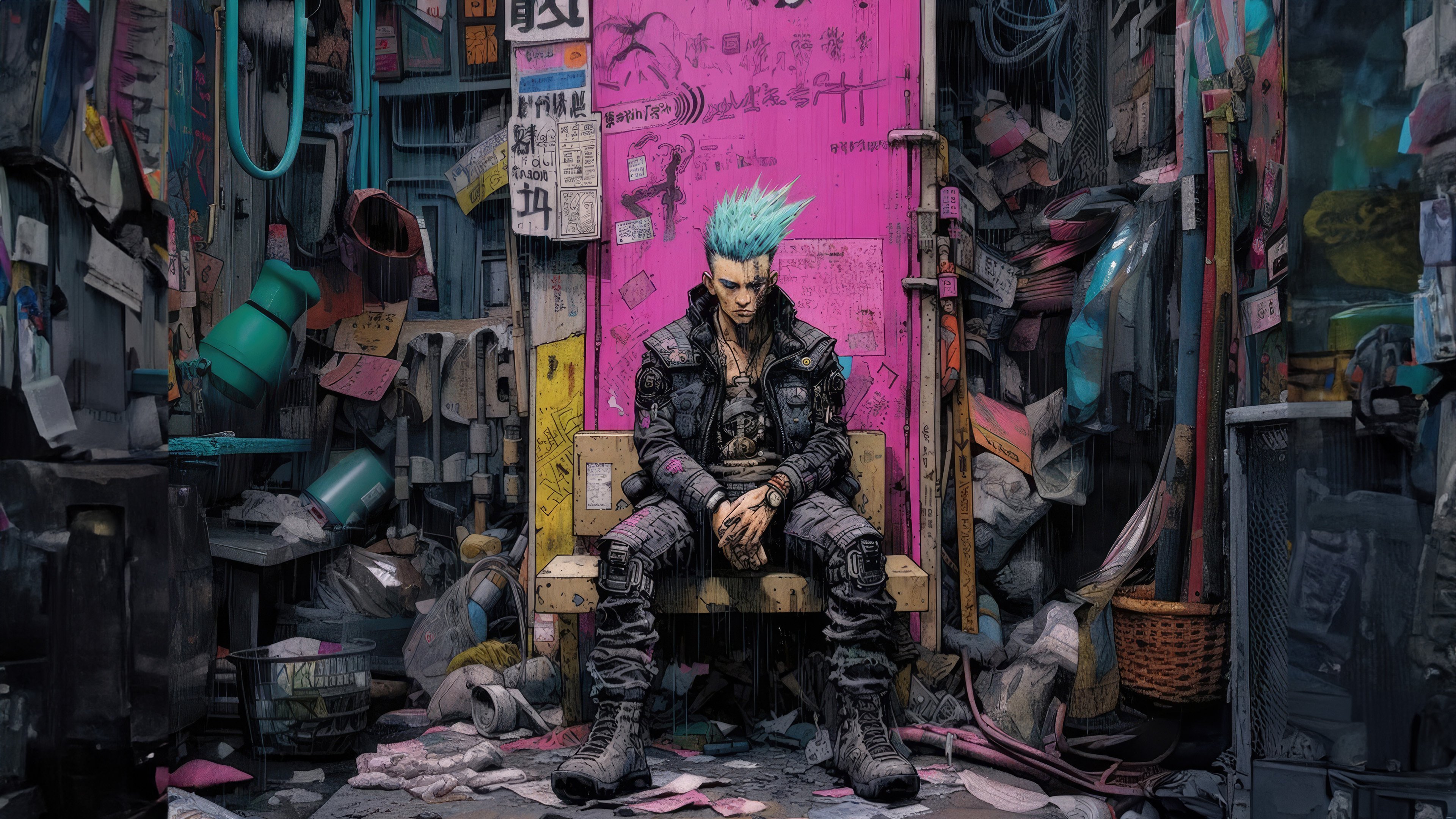 Cyberpunk Boy Set For The Next Gig 4K Desktop Wallpaper