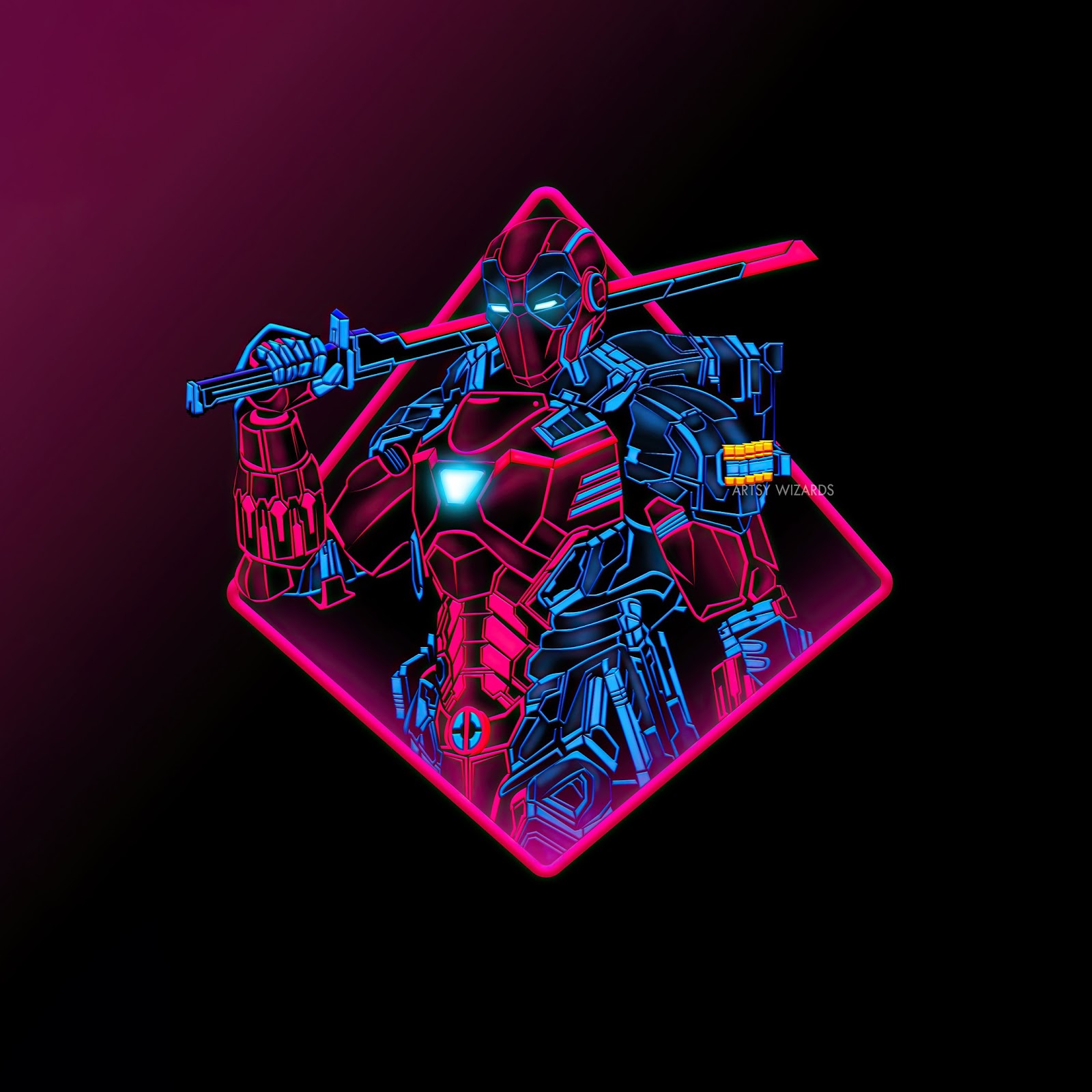 Deadpool Neon Armor Minimal 4K Desktop Wallpaper