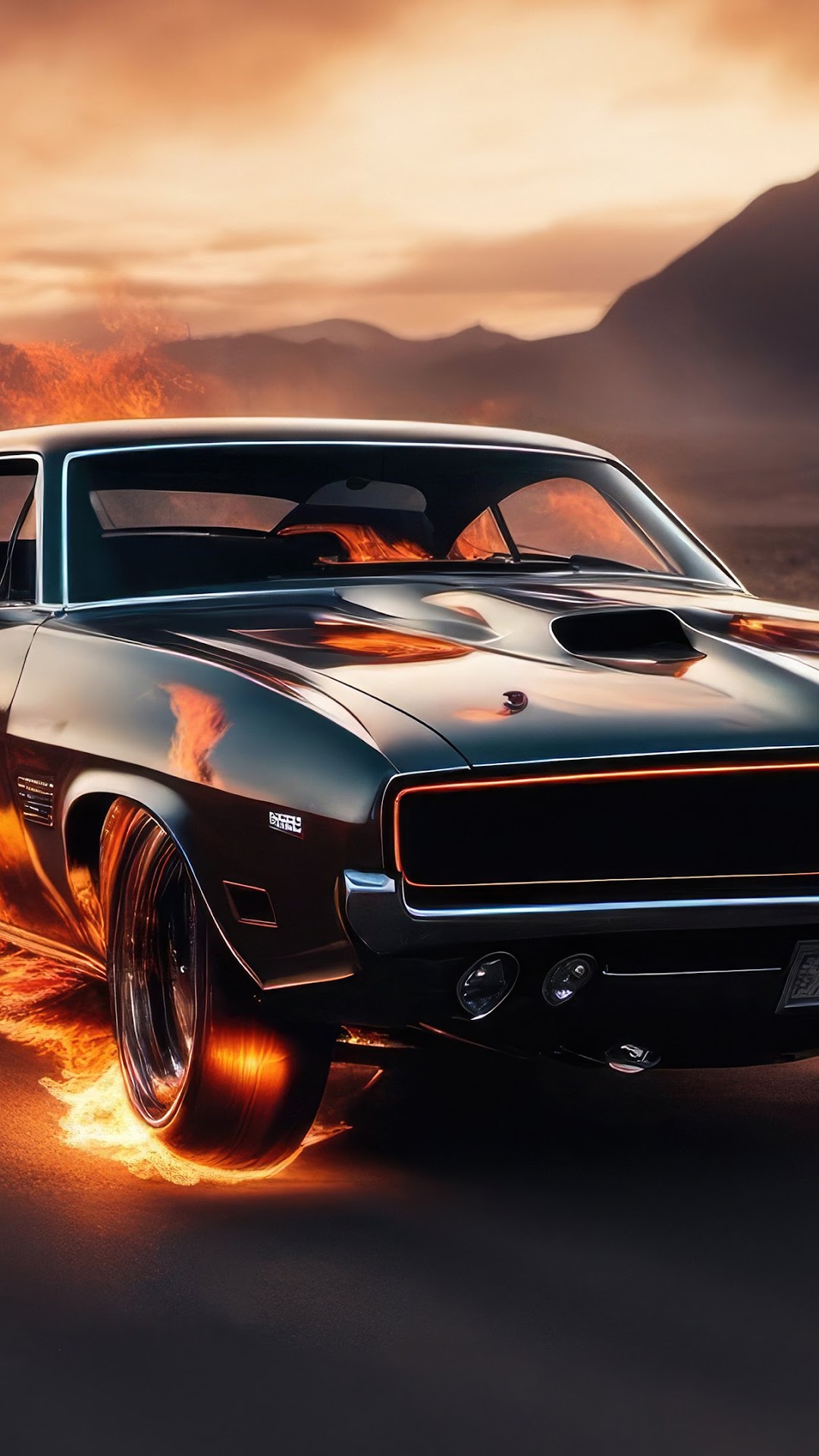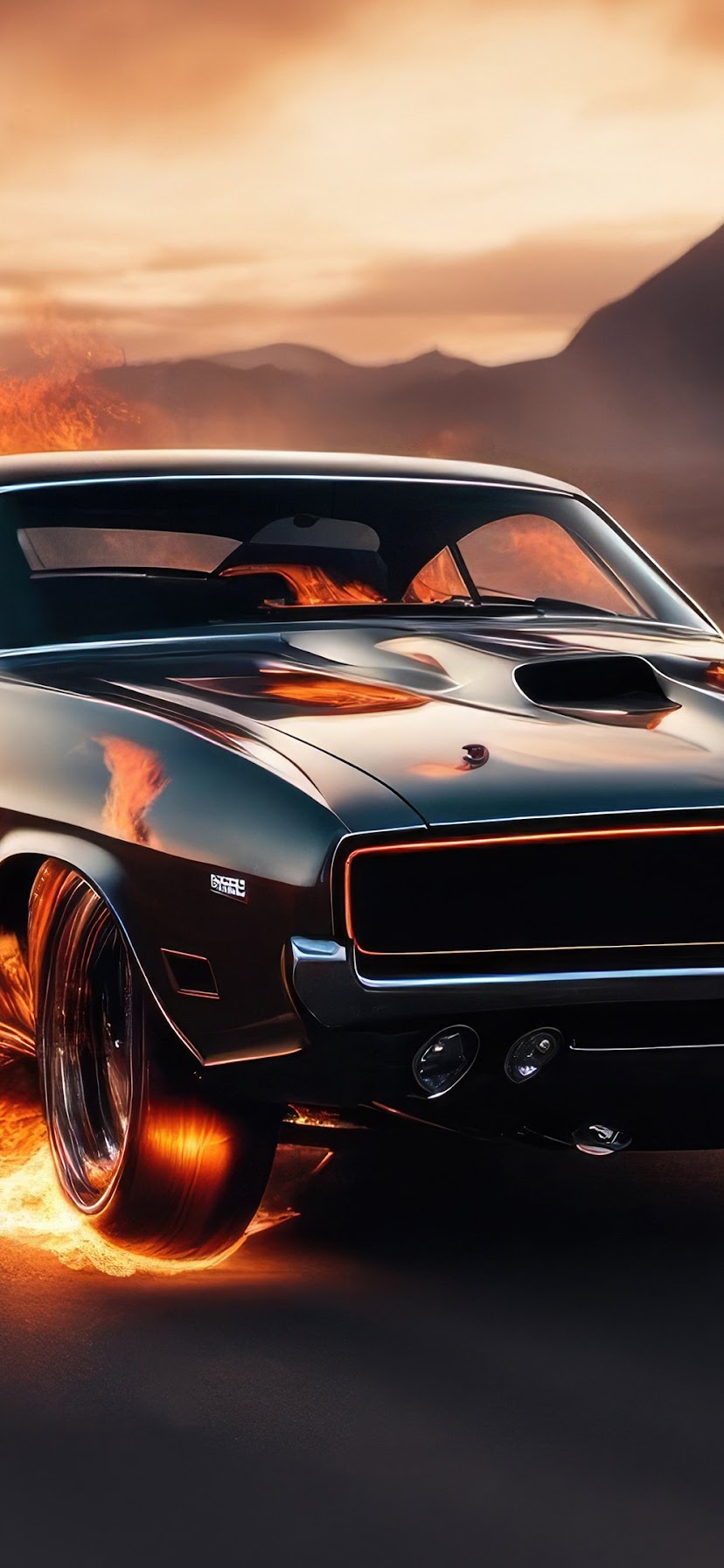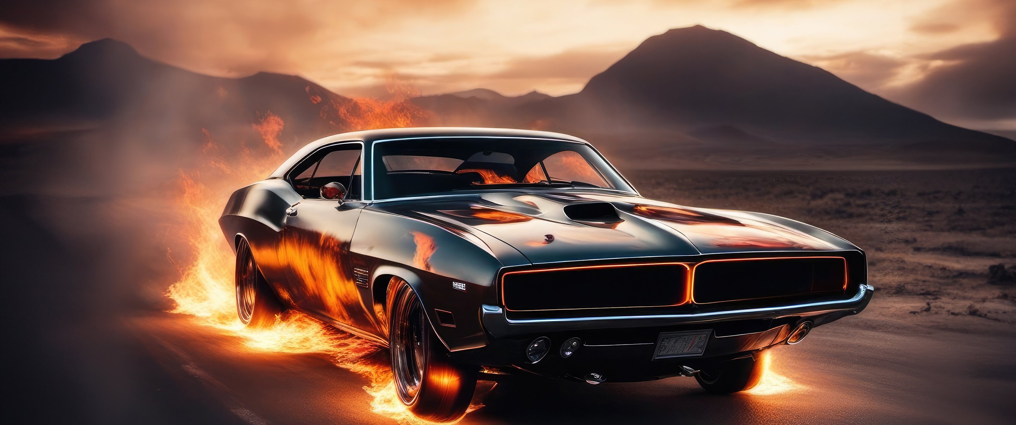 Challenger, Muscle Car, Flames, Automotive 4K Wallpaper Background with a maximum resolution of 3840x2160 px.