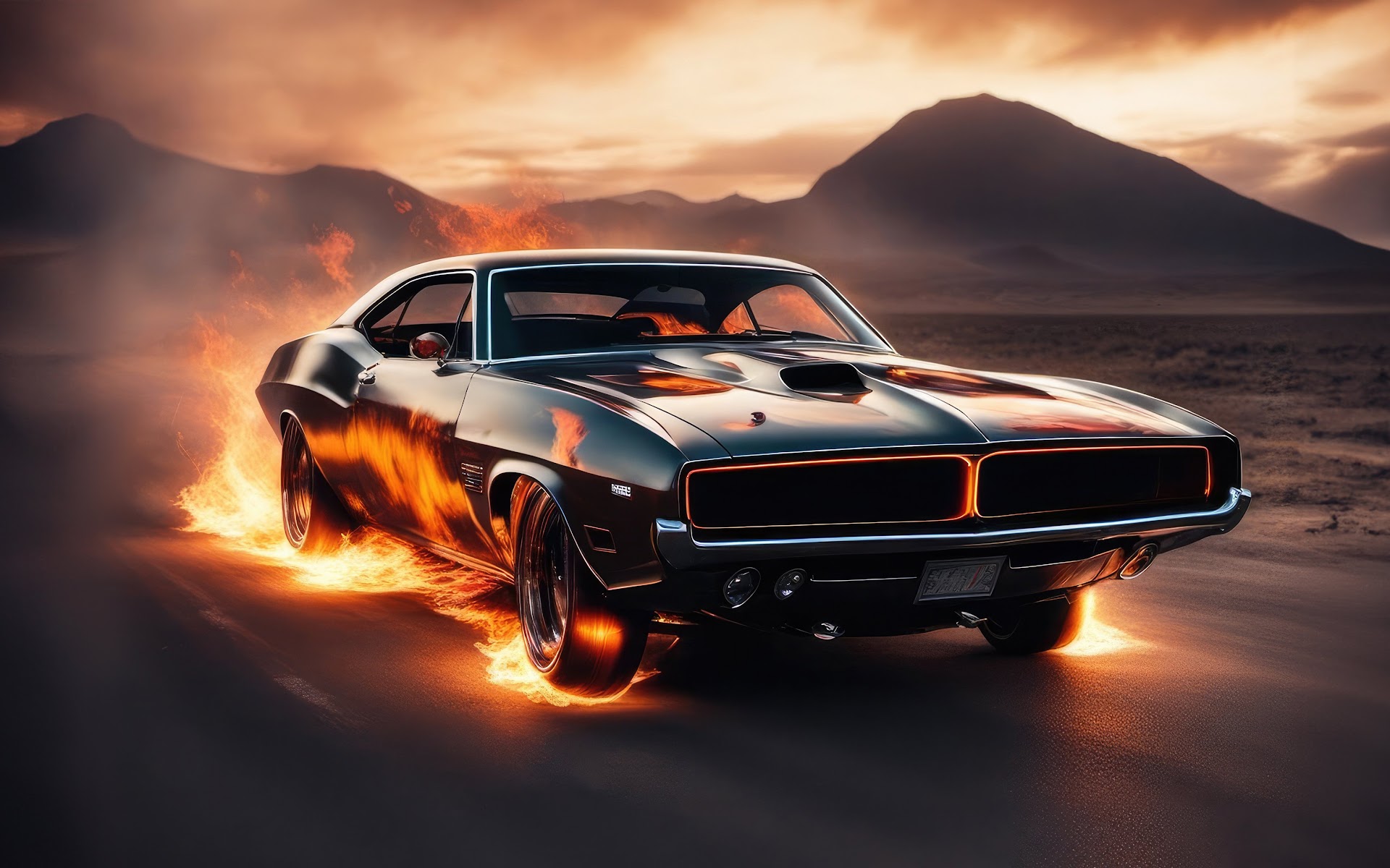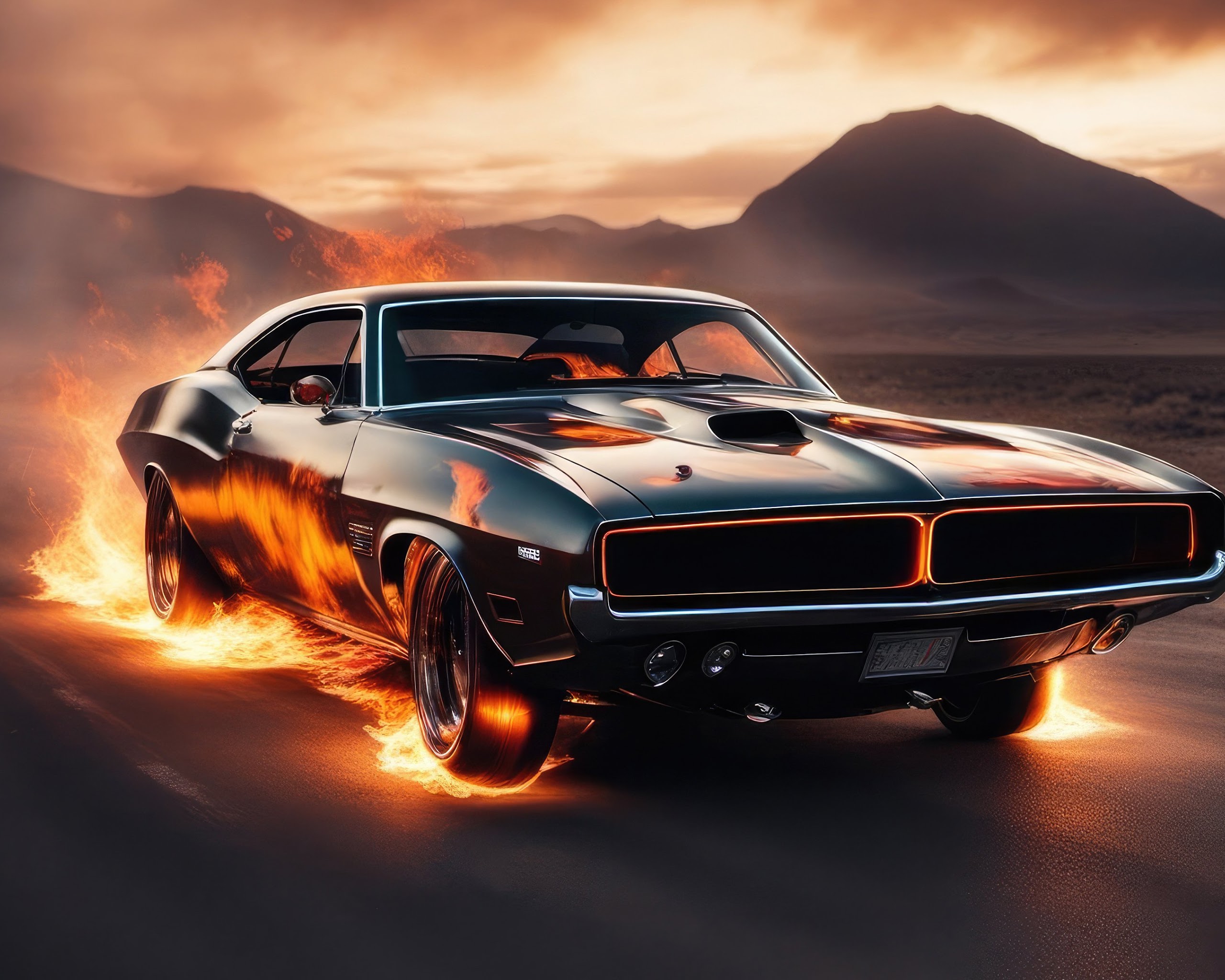 Challenger, Muscle Car, Flames, Automotive 4K Desktop Wallpaper