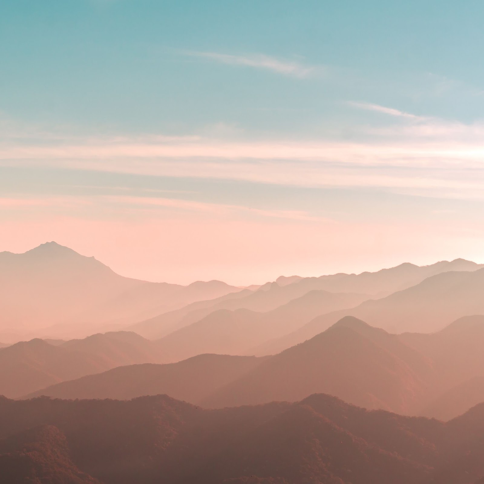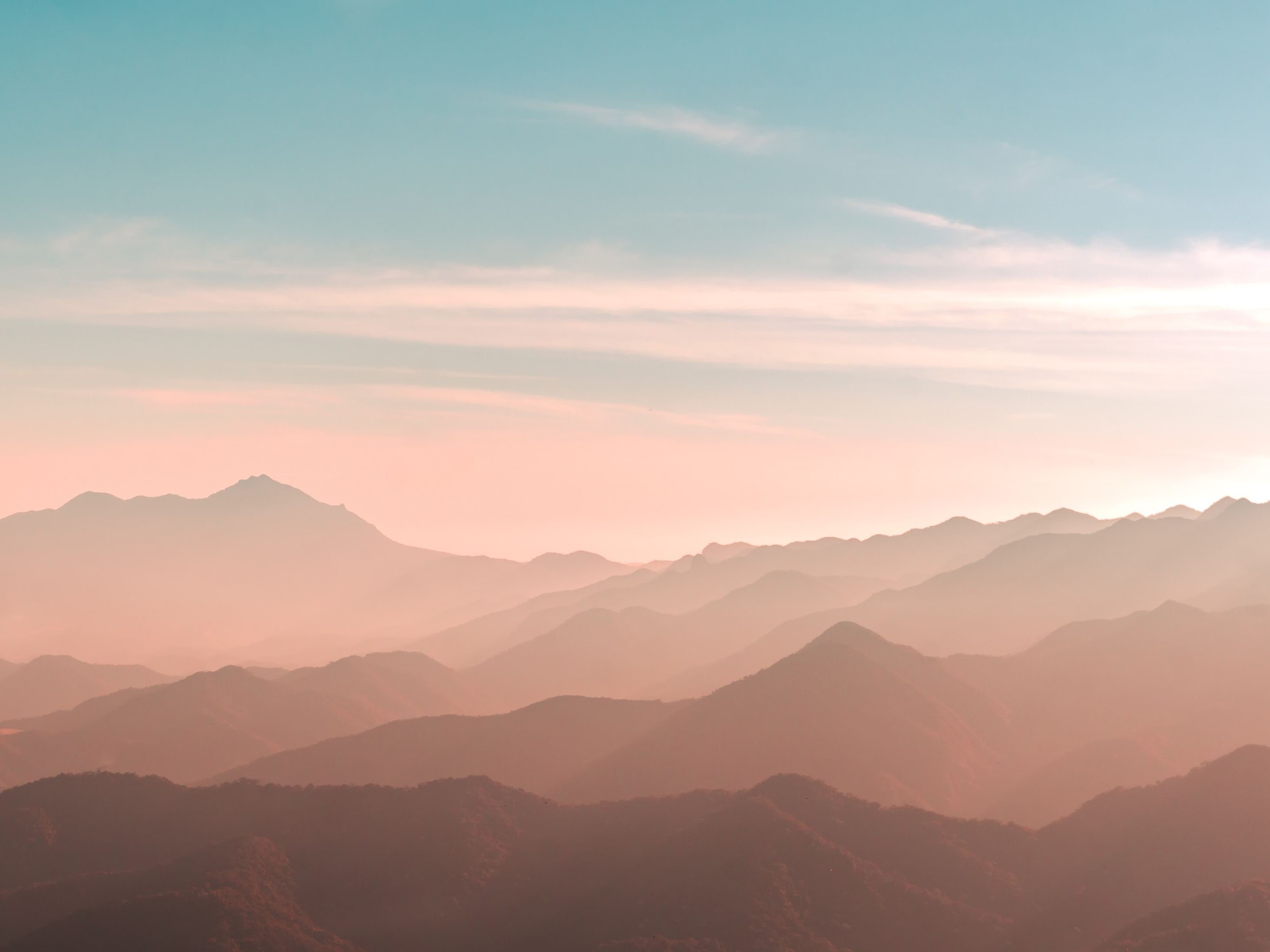 Mountains, Haze, Landscape, Sunrise 4K Wallpaper Background with a maximum resolution of 3840x2160 px.