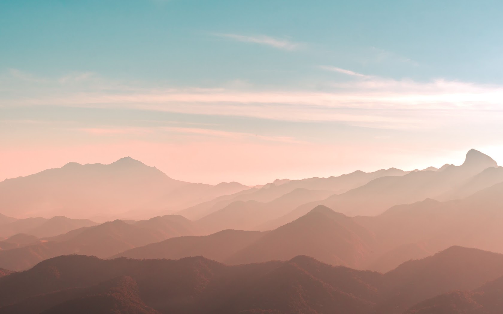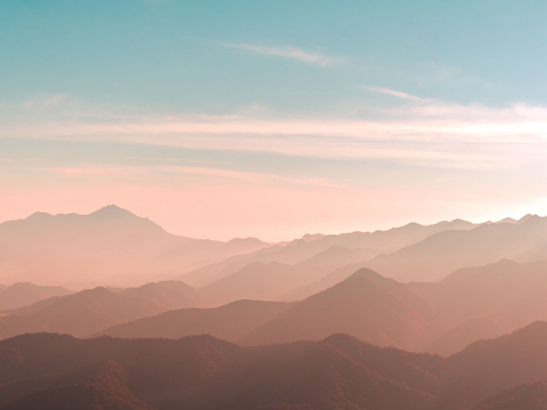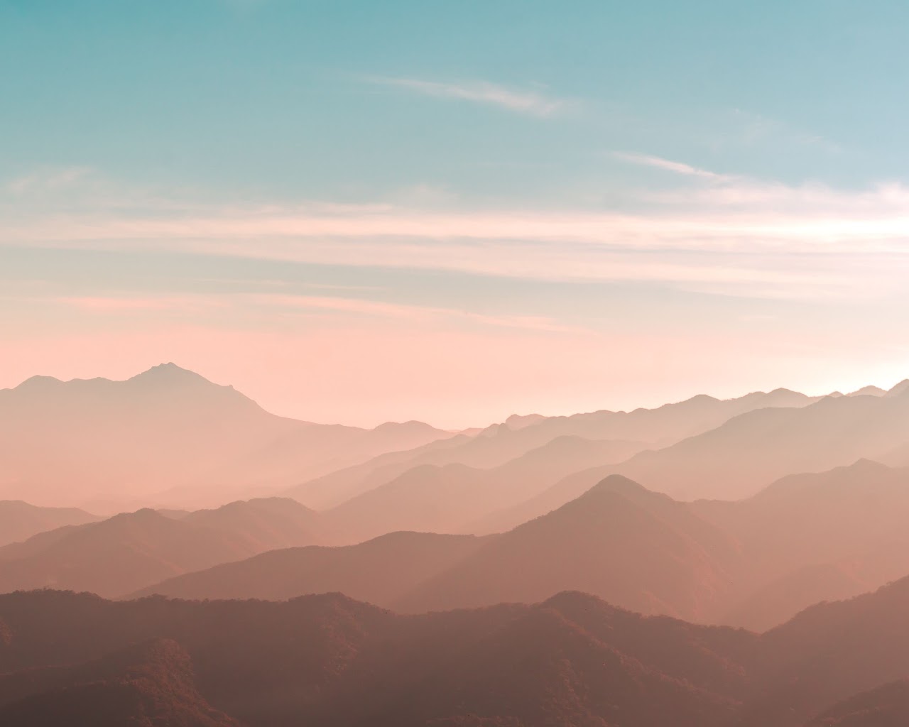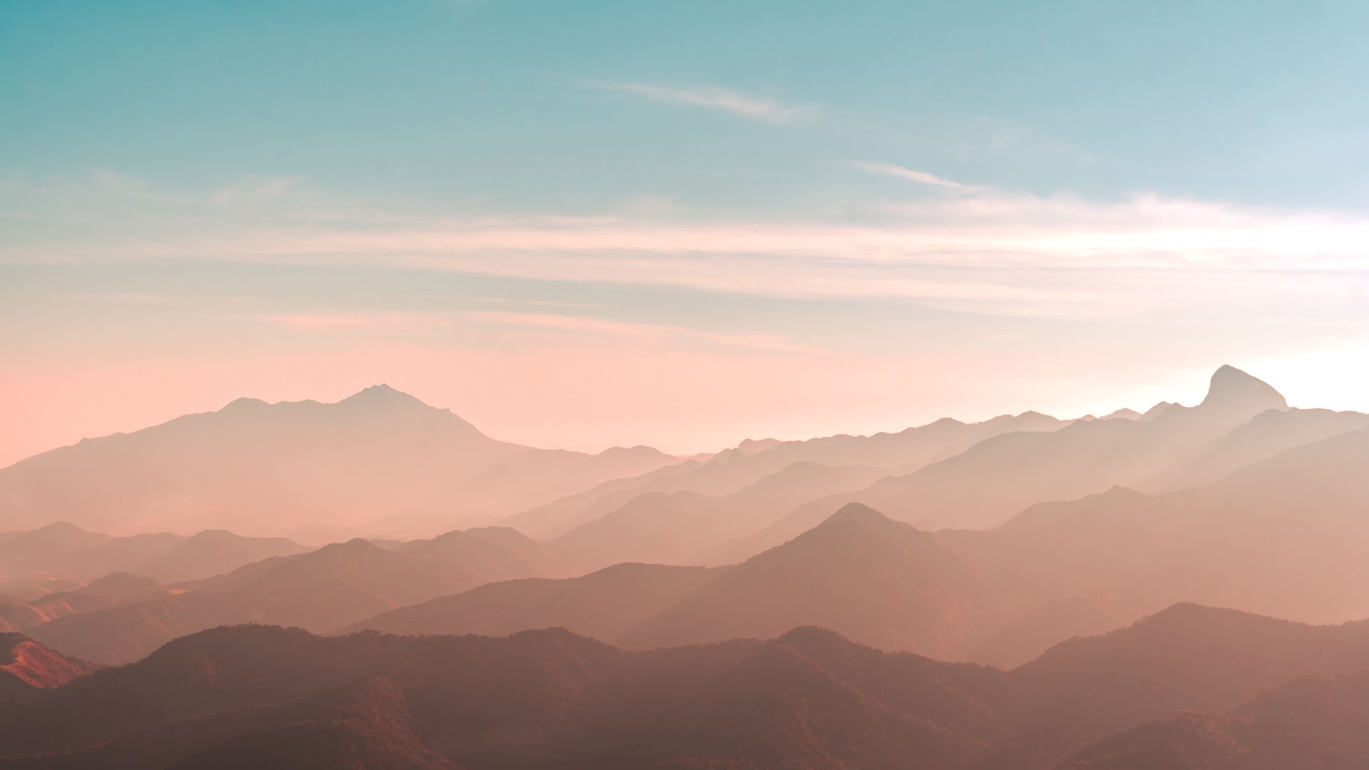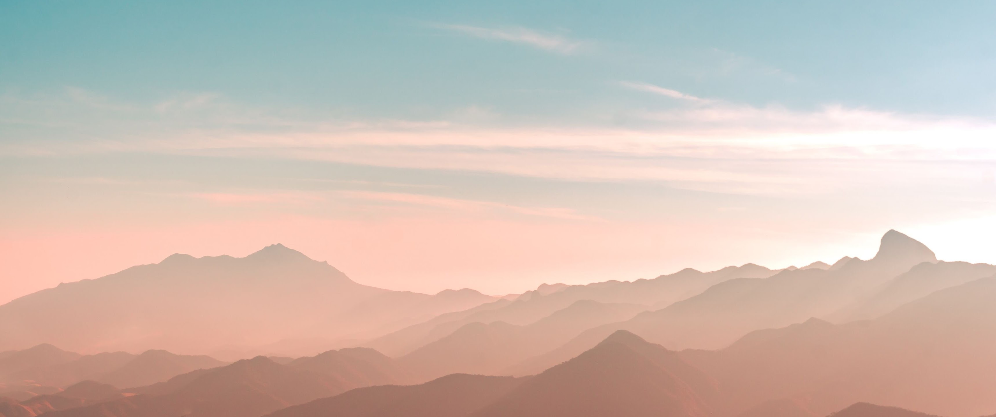 Mountains, Haze, Landscape, Sunrise 4K Desktop Wallpaper