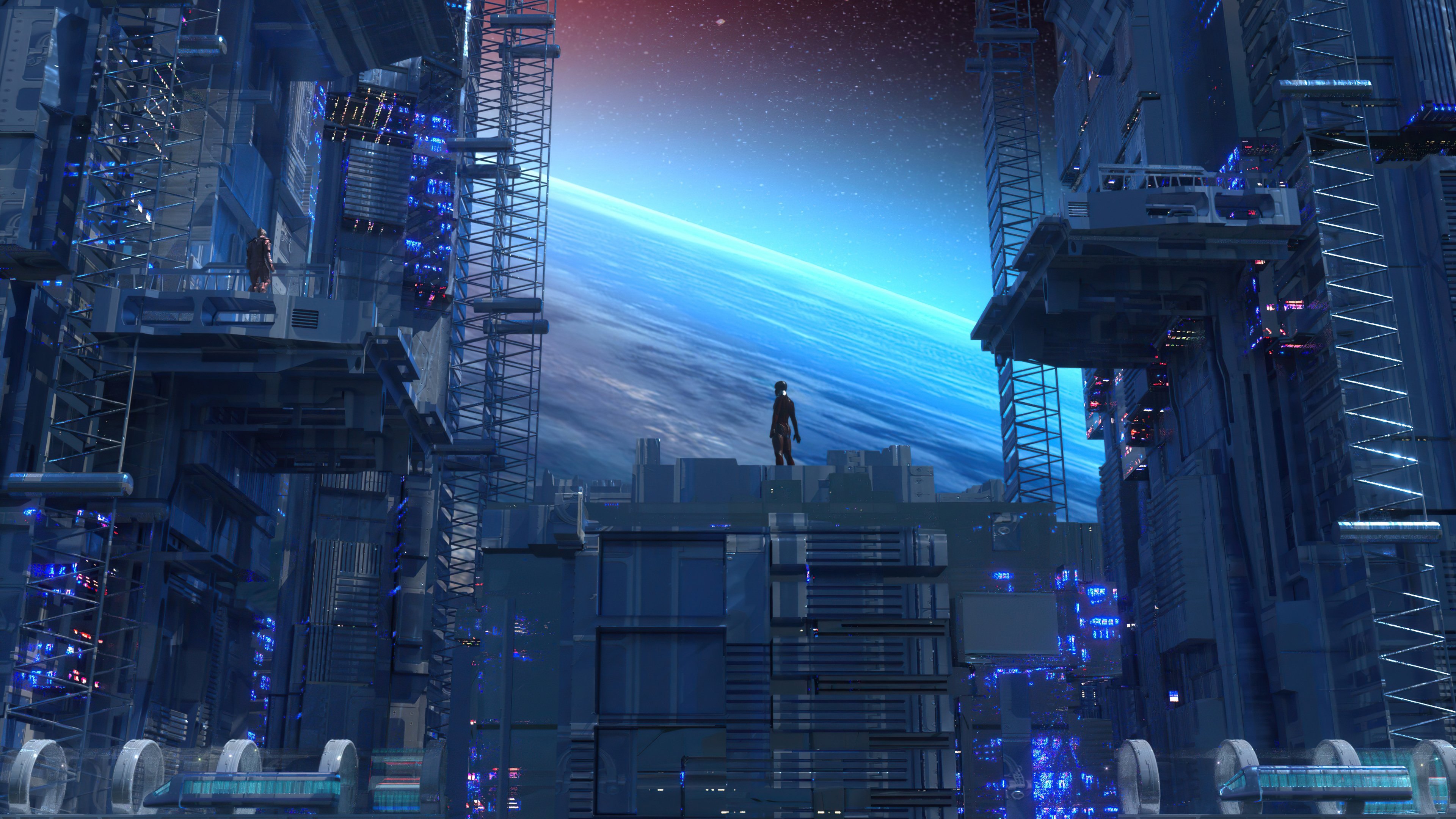 Edge Of The World Scifi Cyberpunk 4K Desktop Wallpaper Background with a maximum resolution of 3840x2160 px.