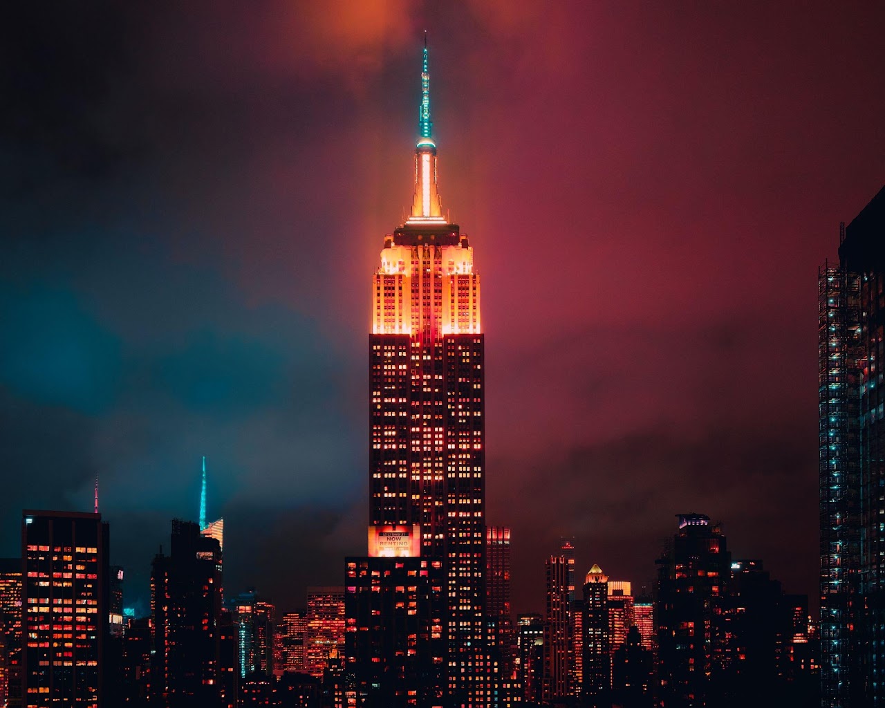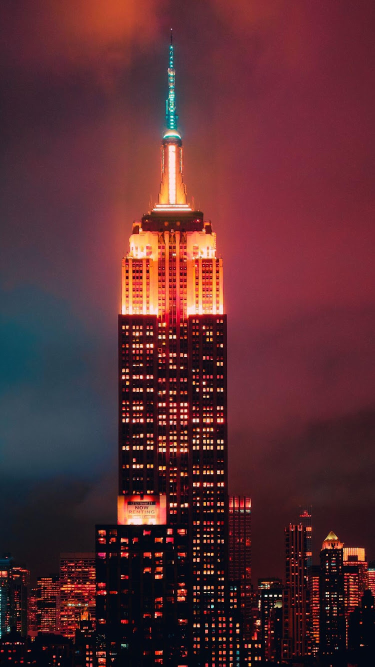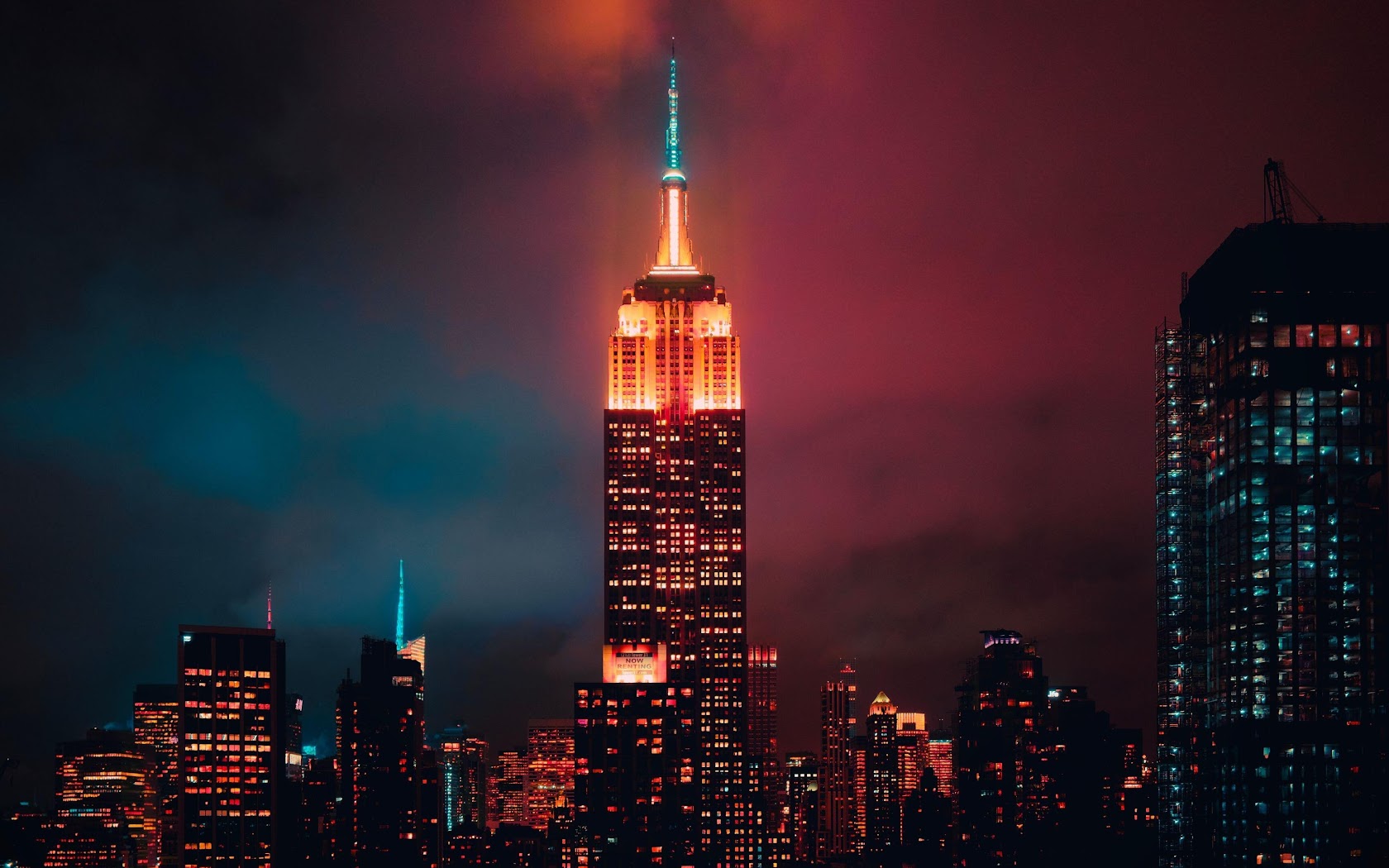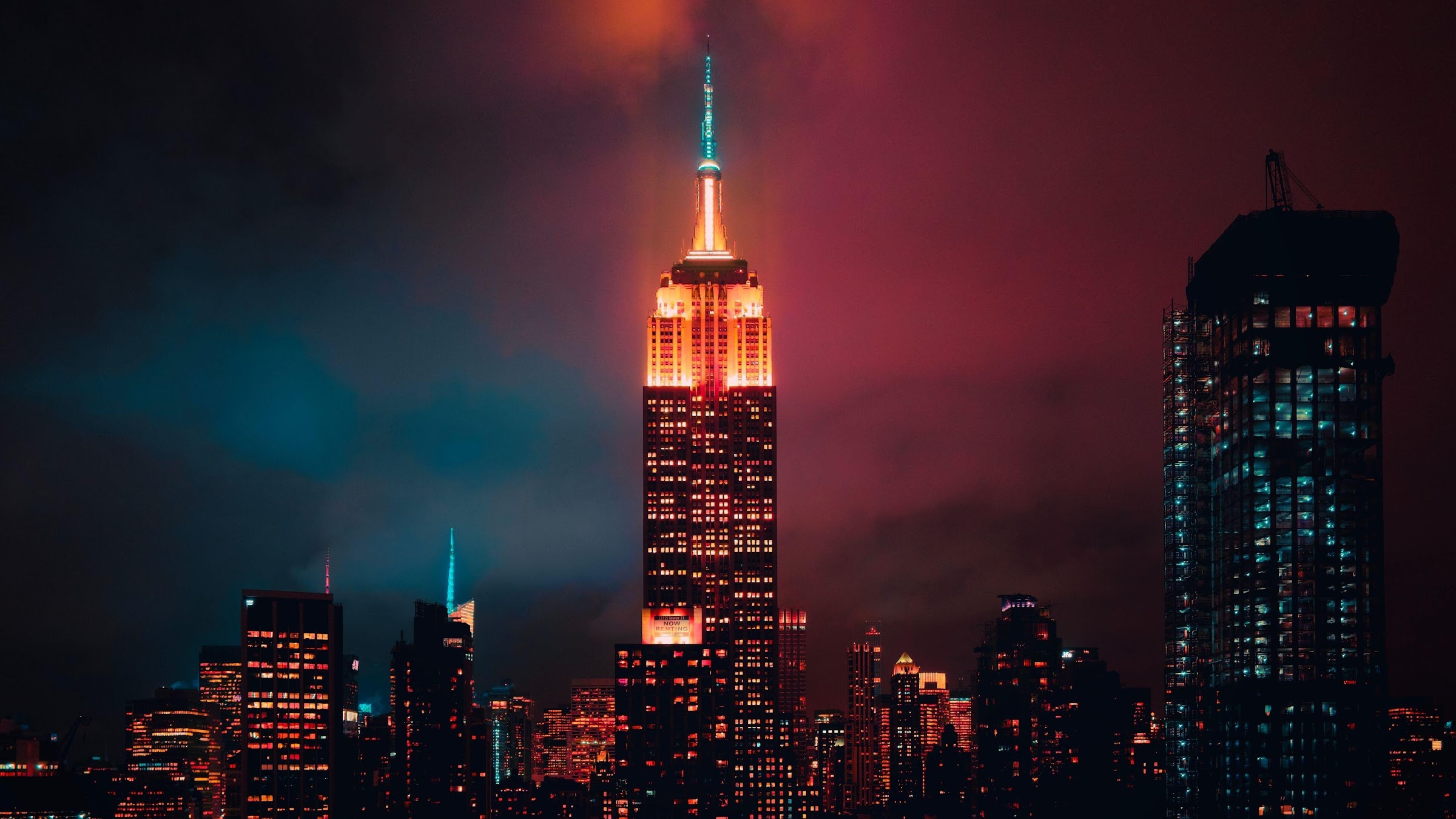 Empire State Building Night 4K Desktop Wallpaper Background with a maximum resolution of 3840x2160 px.