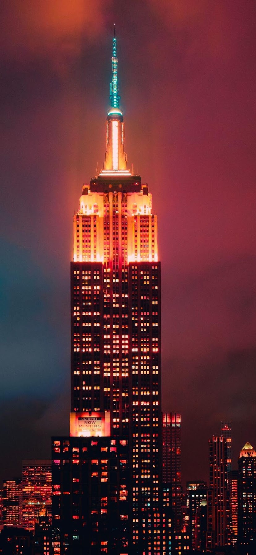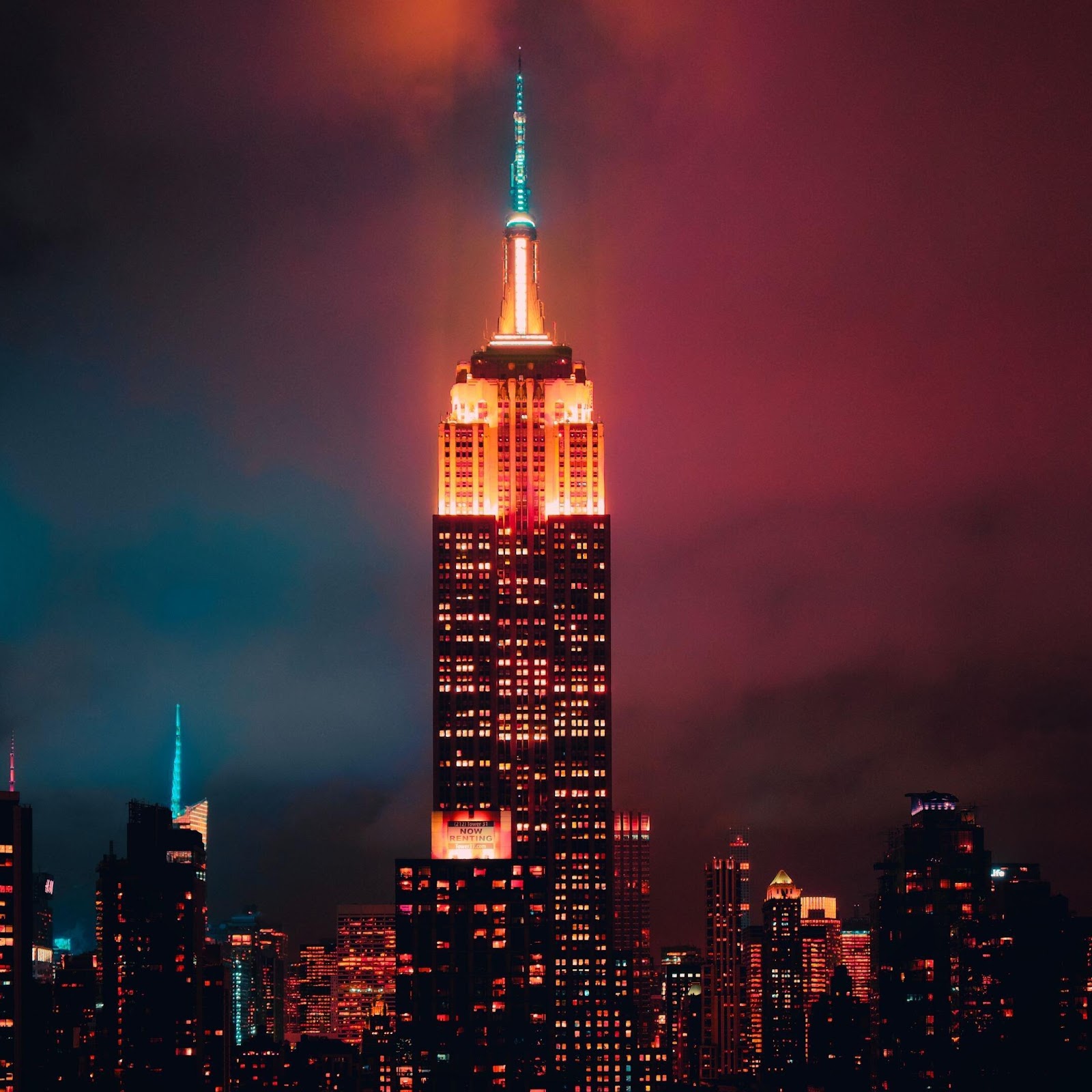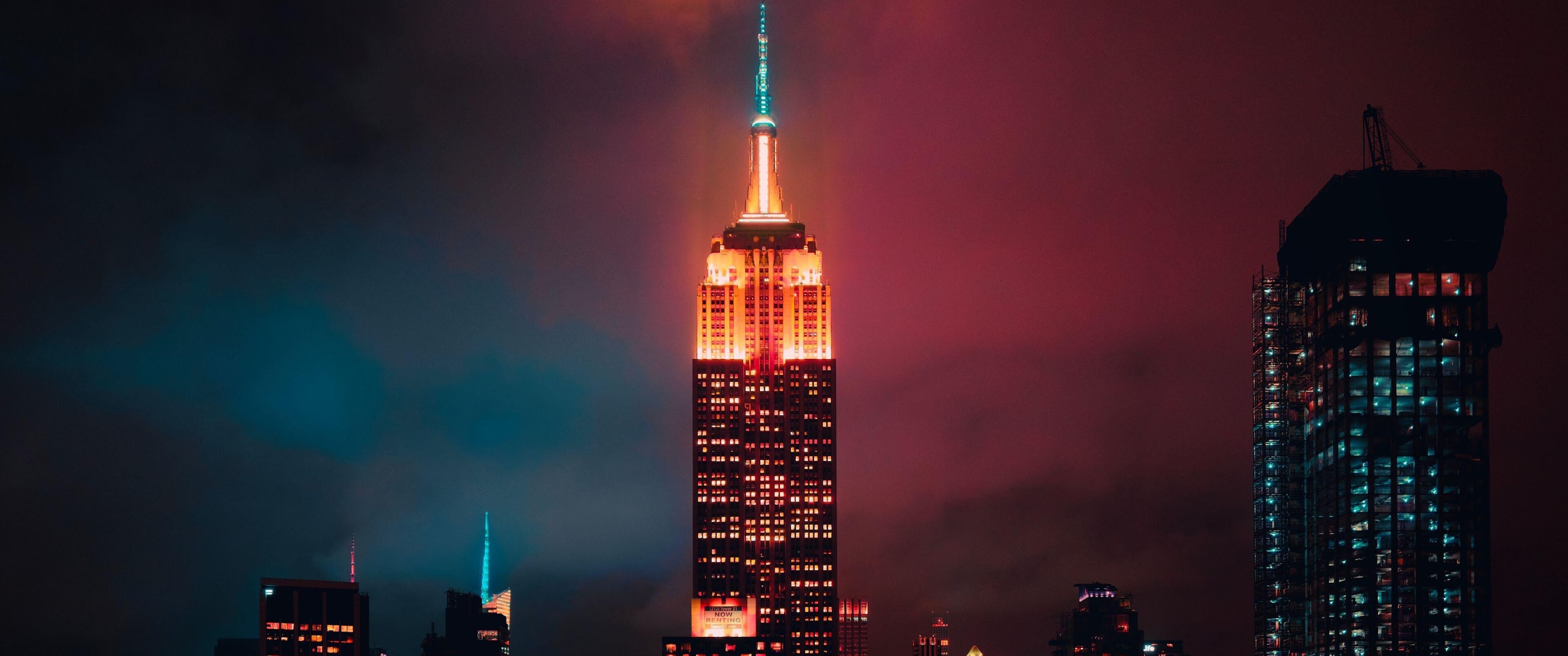Empire State Building Night 4K Desktop Wallpaper Background with a maximum resolution of 3840x2160 px.