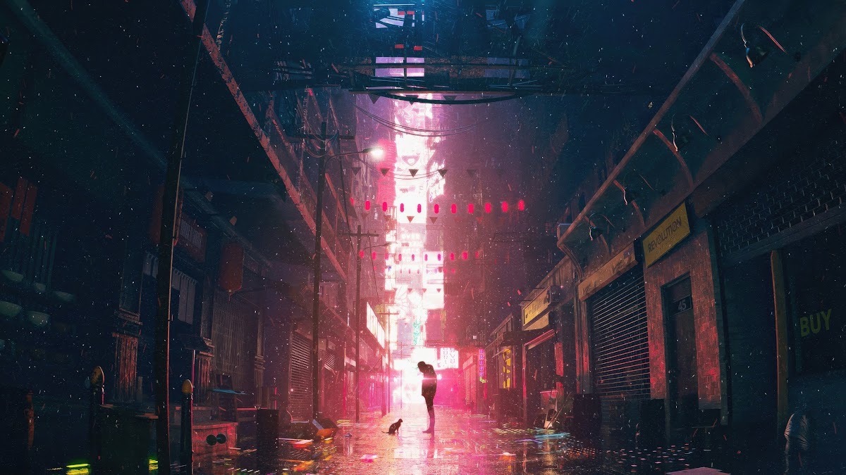 Cyberpunk, Alleyway, Neon, Rain 4K Desktop Wallpaper Background [3840x2160] Free Download