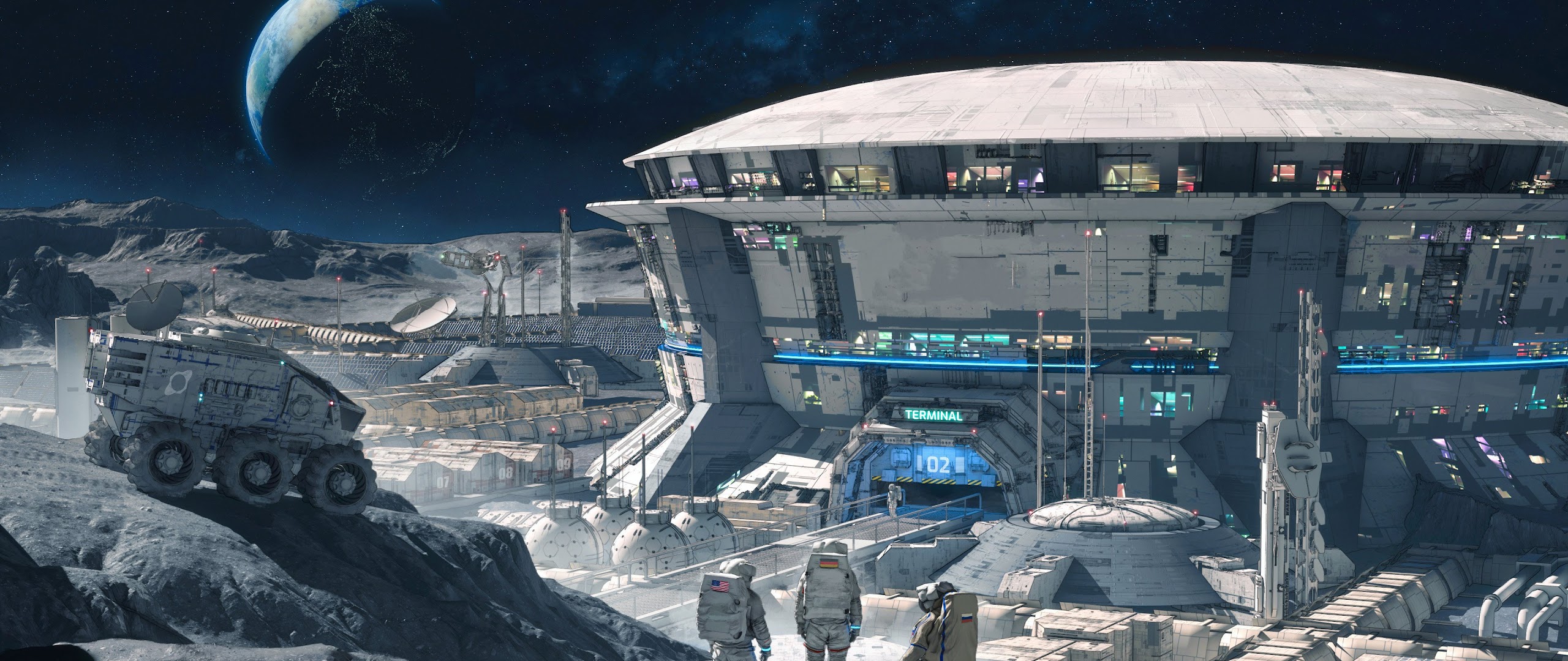 Fantasy Art, Artwork, Moon, Building, Space Station 4K Desktop Wallpaper