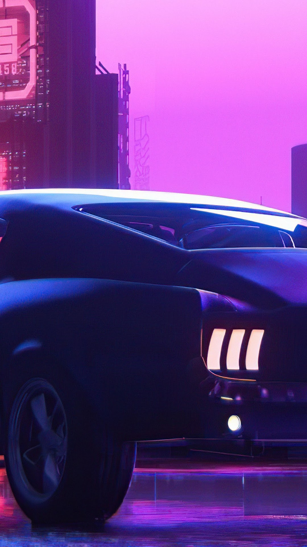 Cyberpunk, Mustang, Neon, Retrowave 4K Phone Wallpaper