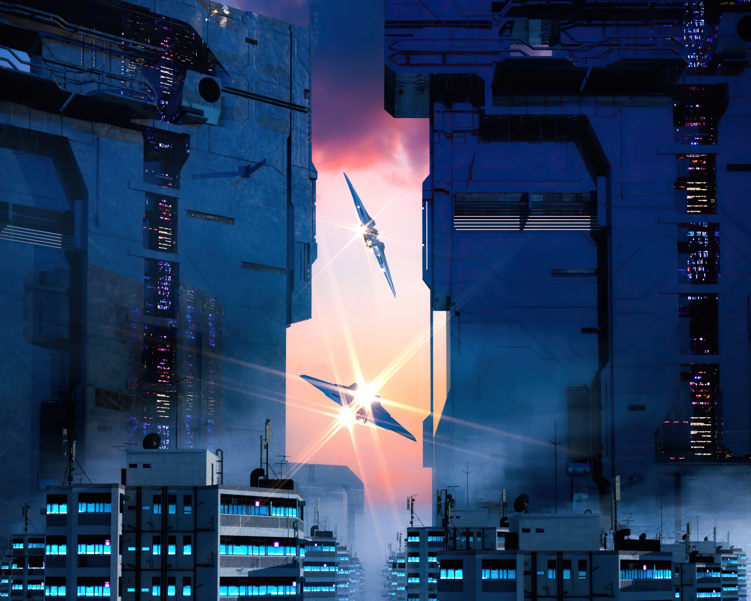 Futurustic City Scifi Otoy 4K Desktop Wallpaper Background with a maximum resolution of 3840x2160 px.