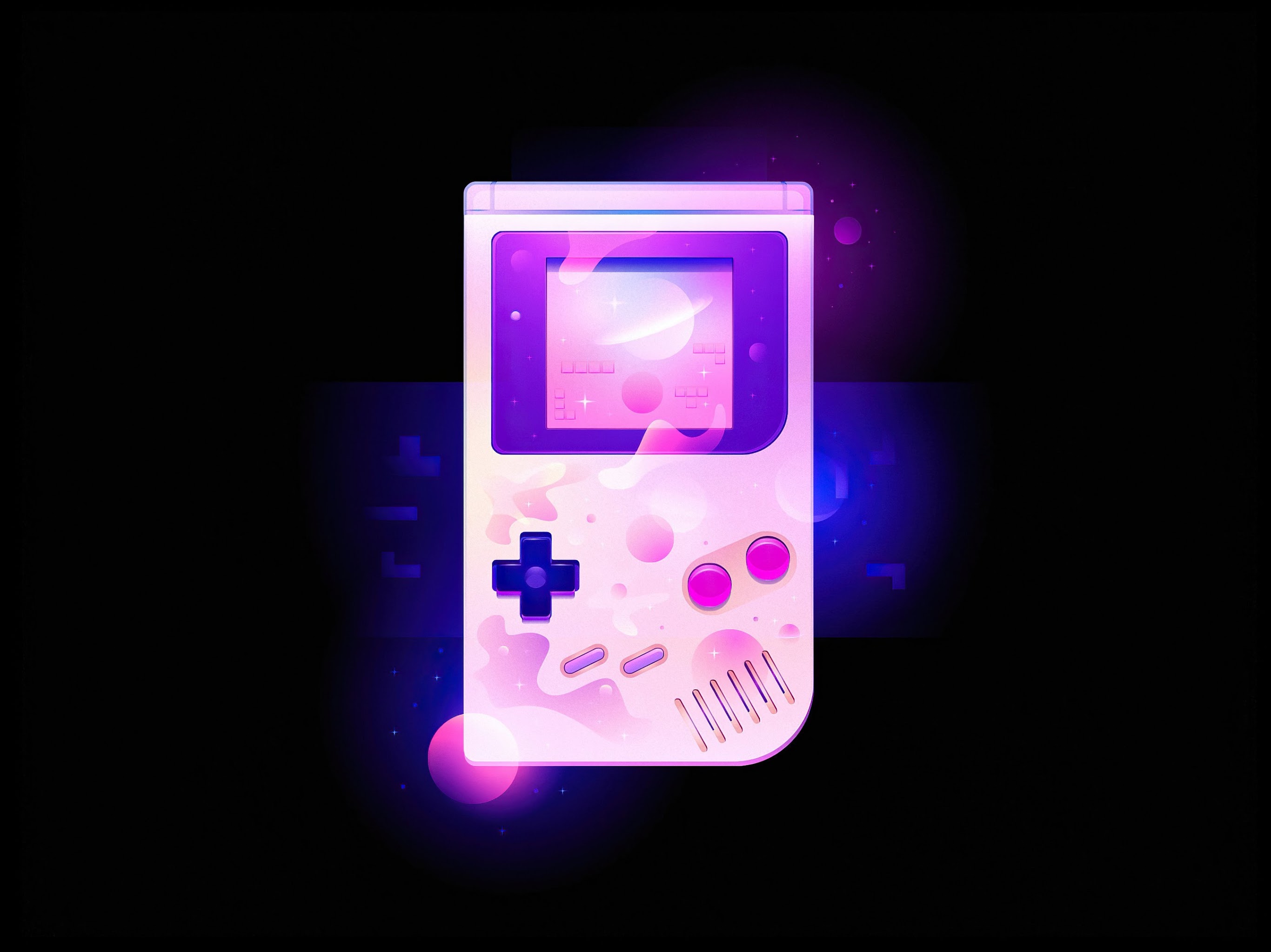 Gameboy, Retro, Neon, Nostalgia 4K Desktop Wallpaper Background with a maximum resolution of 3840x2160 px.