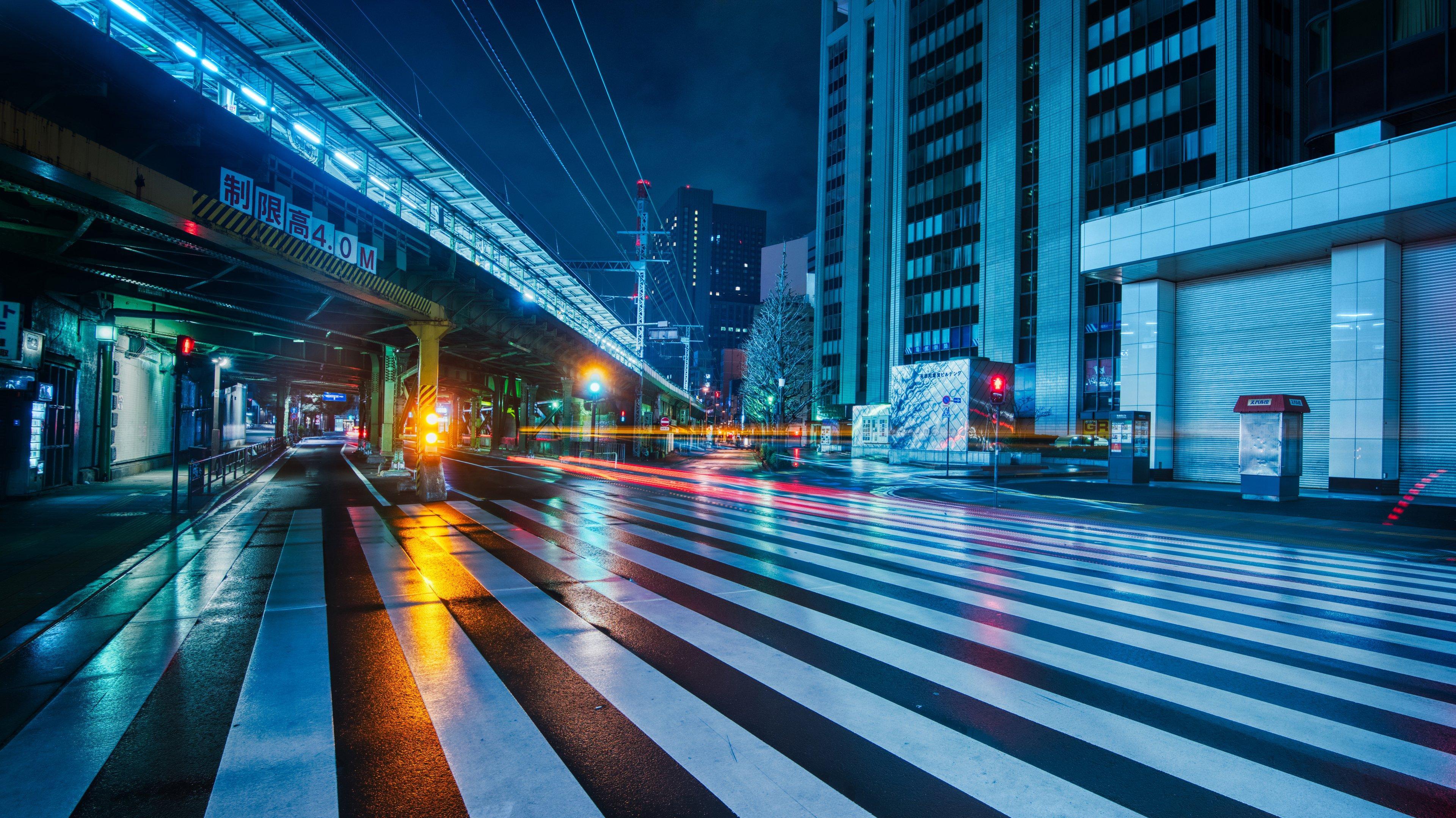 Ginza Tokyo Around Midnight 4K Desktop Wallpaper Background with a maximum resolution of 3840x2160 px.
