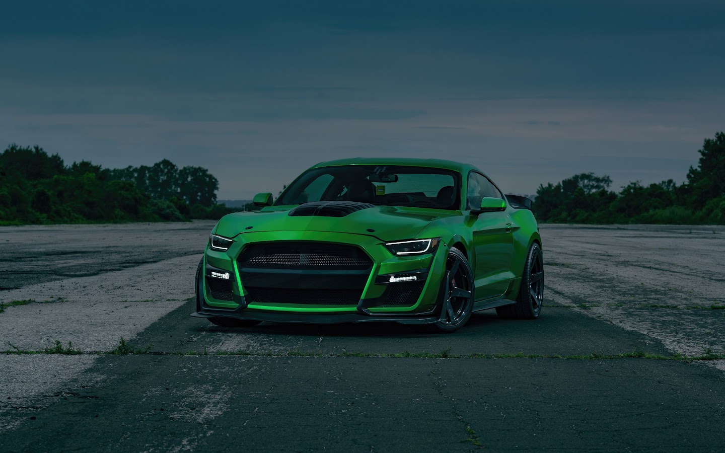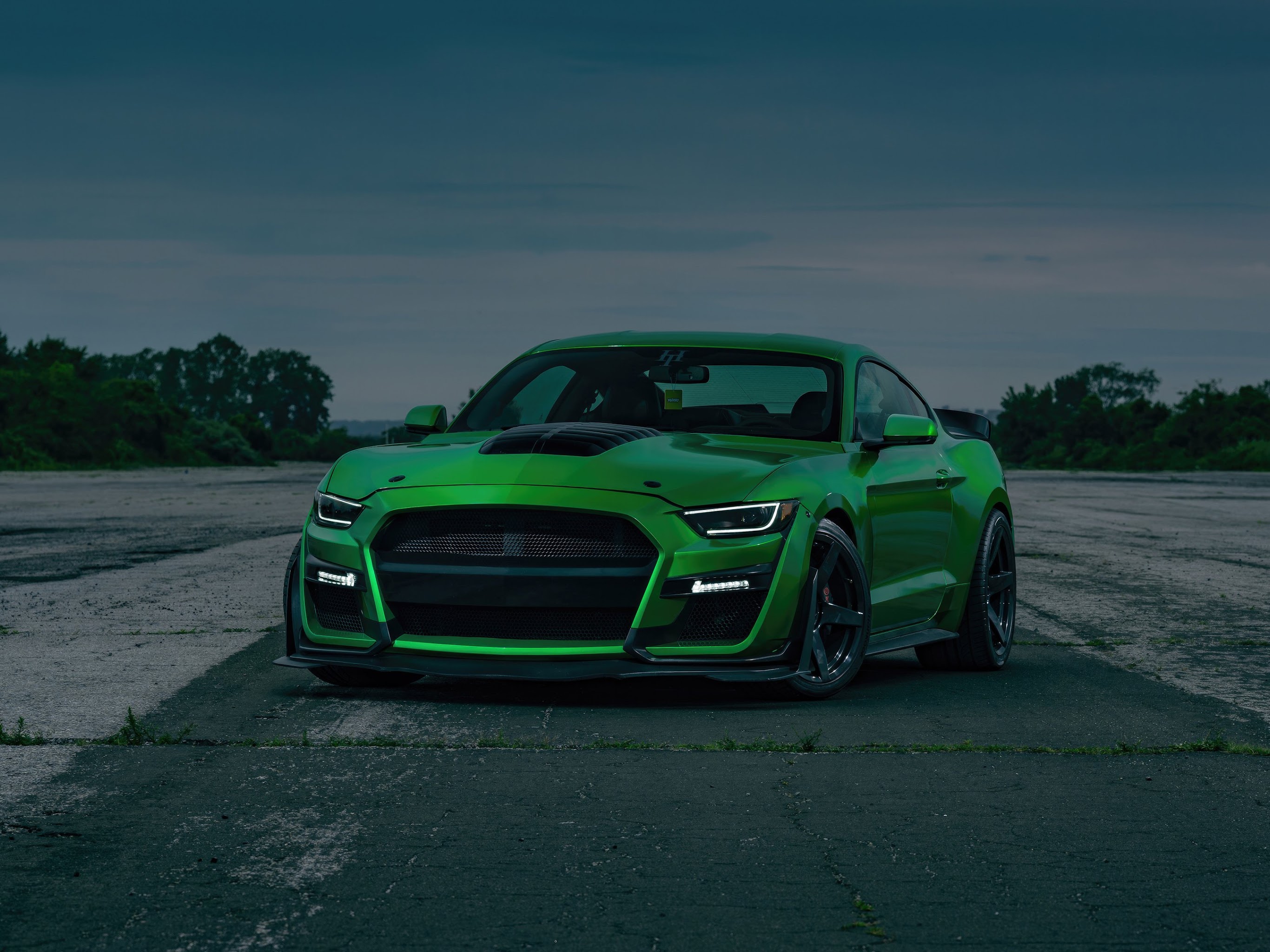 Mustang, Green Car, Modified, Vehicle 4K Desktop Wallpaper