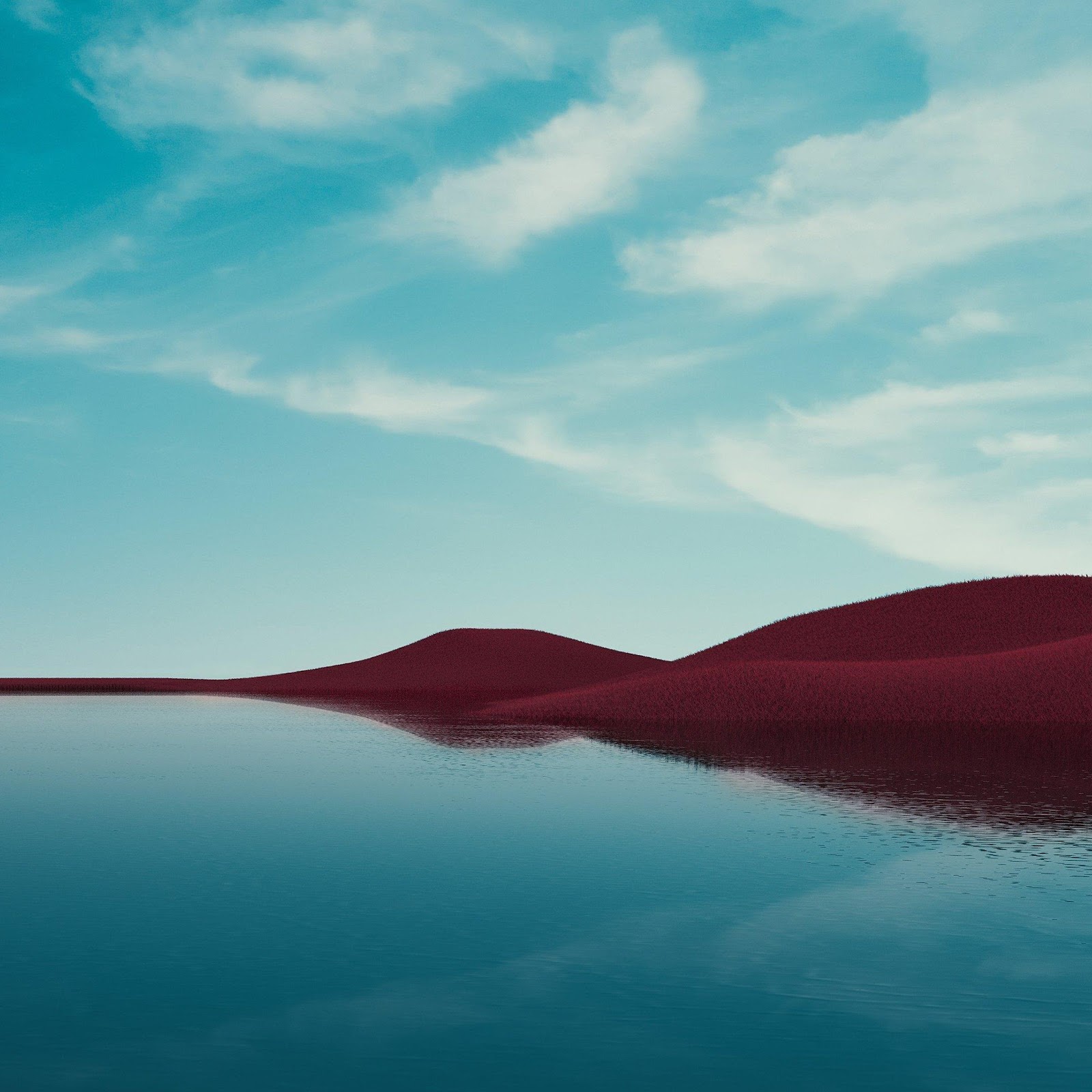 Reflection, Clouds, Red Hills, Blue Sky 4K Phone Wallpaper