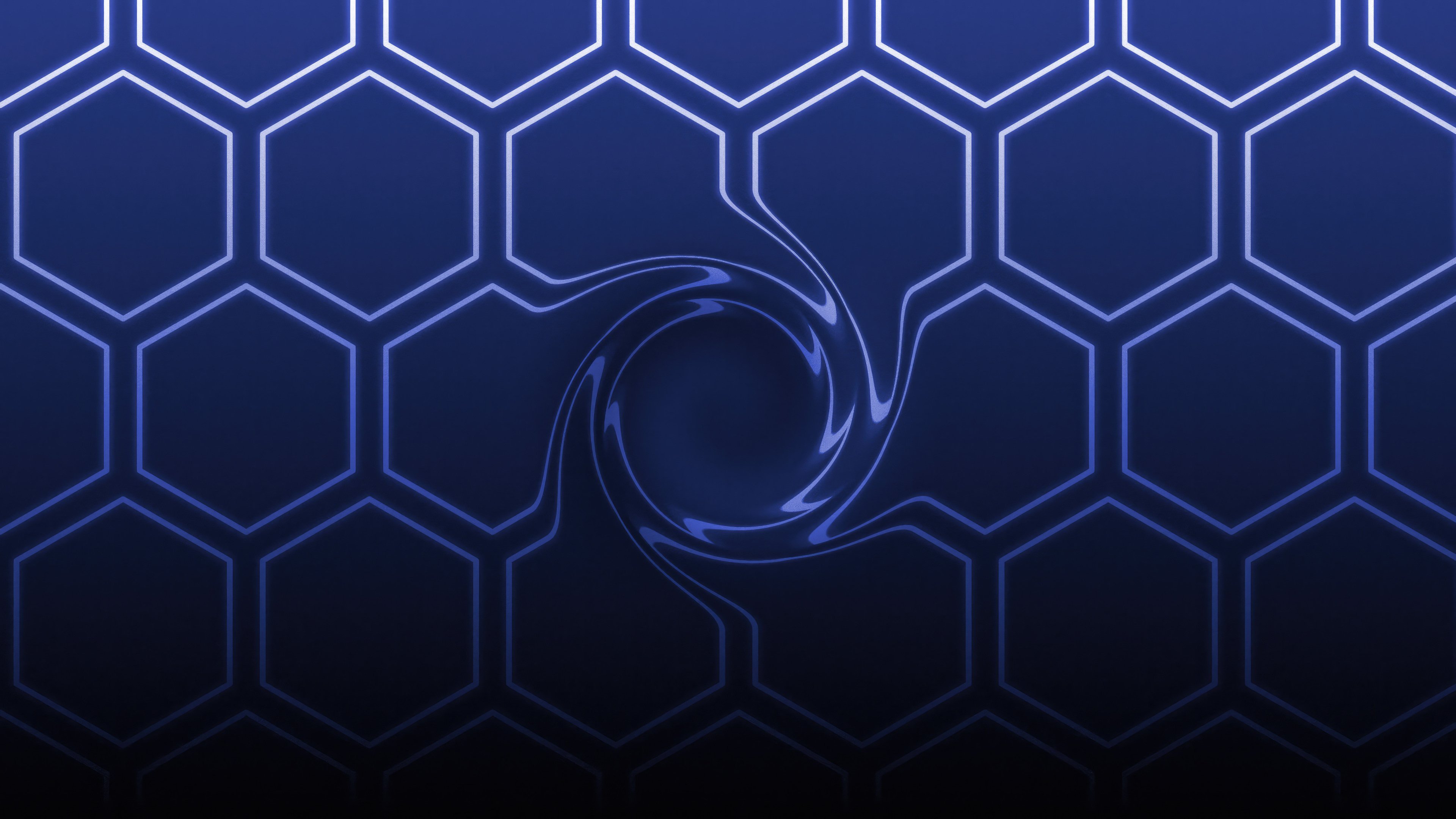 Hexagons, Vortex, Blue, Pattern, Neone 4K Desktop Wallpaper Background with a maximum resolution of 3840x2160 px.