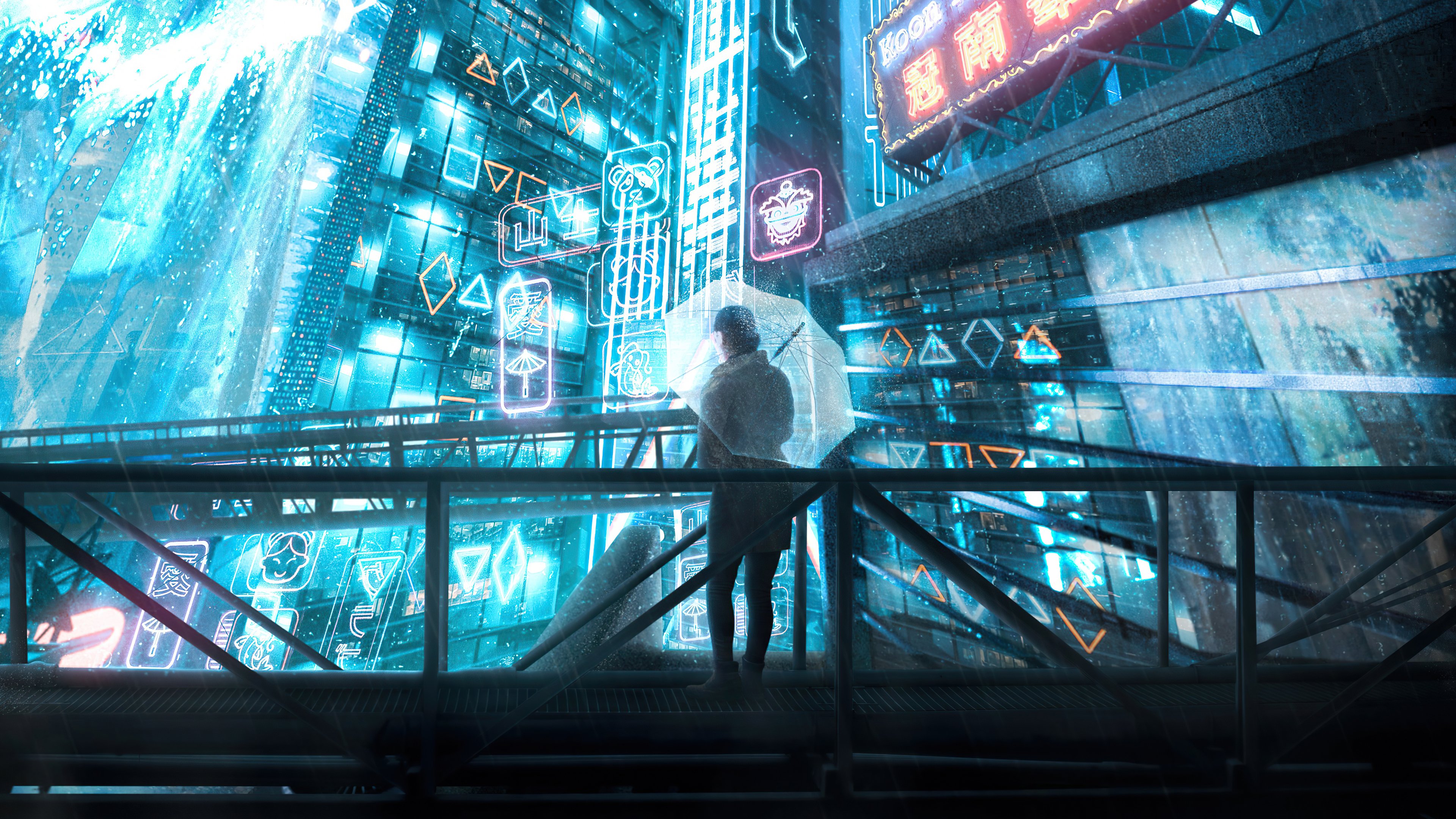 Cyberpunk, Neon, Futuristic, Rainy 4K Desktop Wallpaper Background with a maximum resolution of 3840x2160 px.