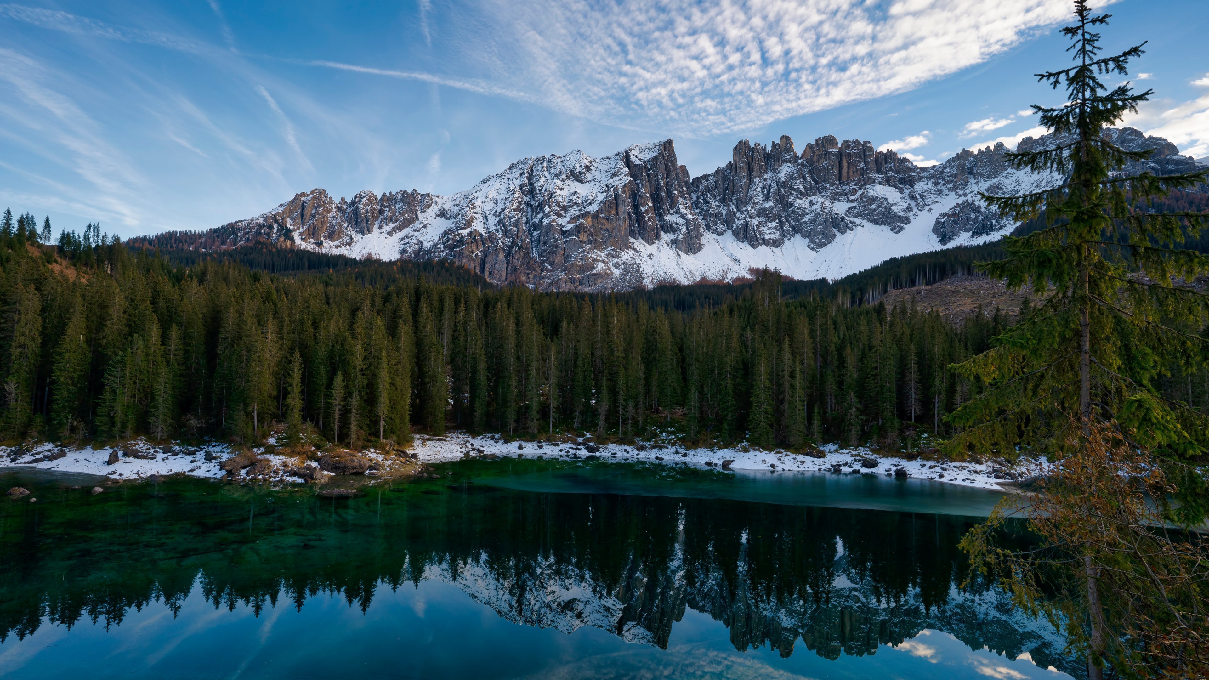 Carezza, Dolomites, Mountains, Lake 4K Desktop Wallpaper Background [3840x2160] Free Download