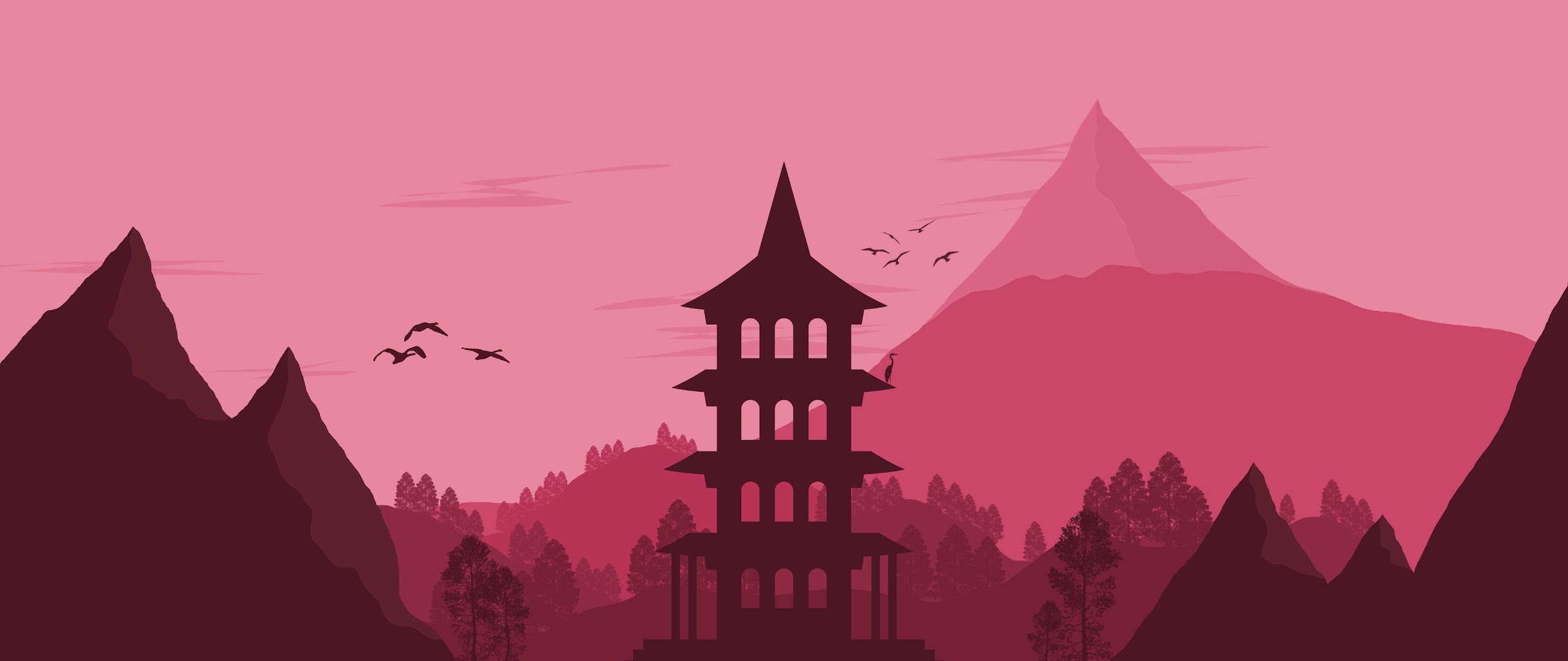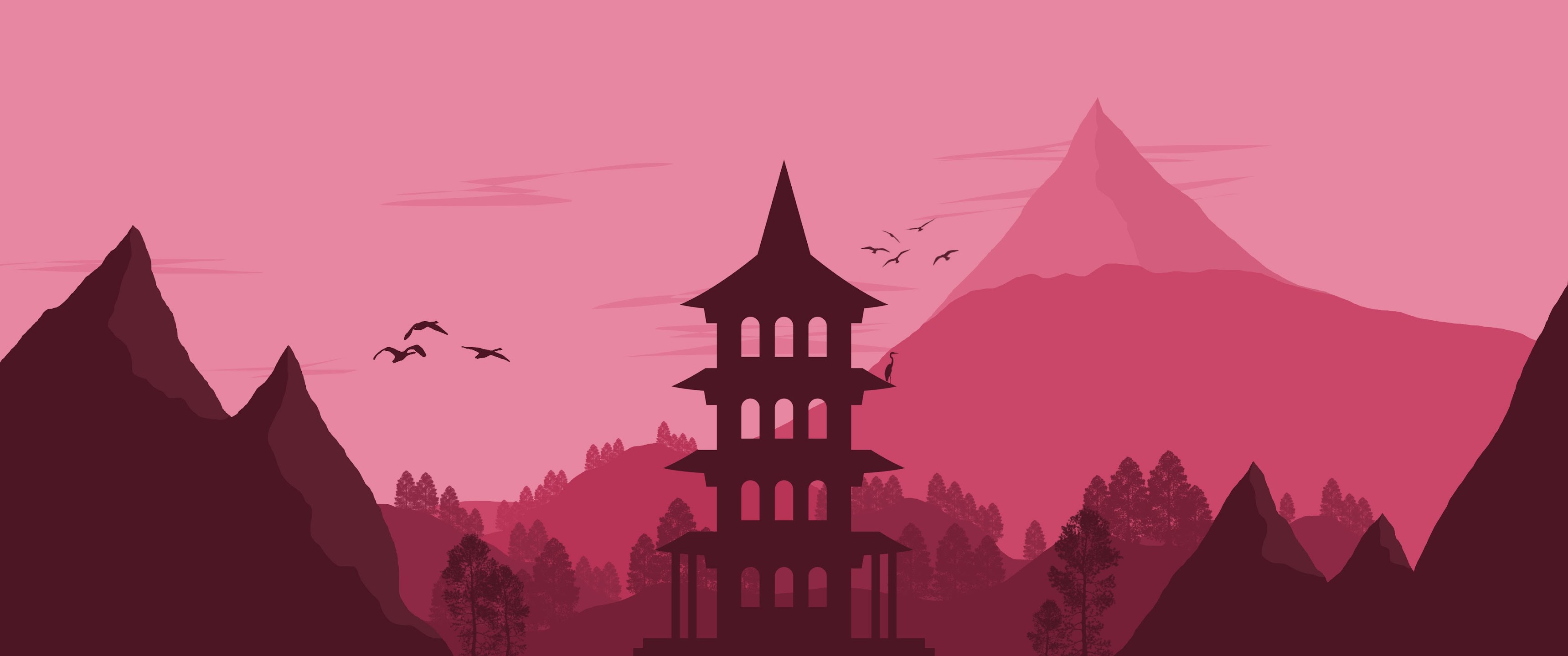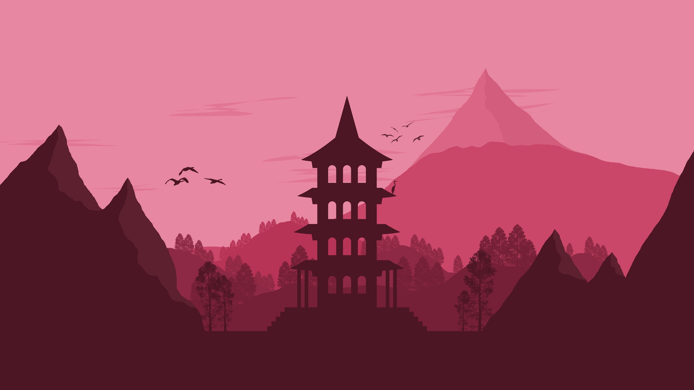 Japan Landscape Vector Minimalist 4K Desktop Wallpaper