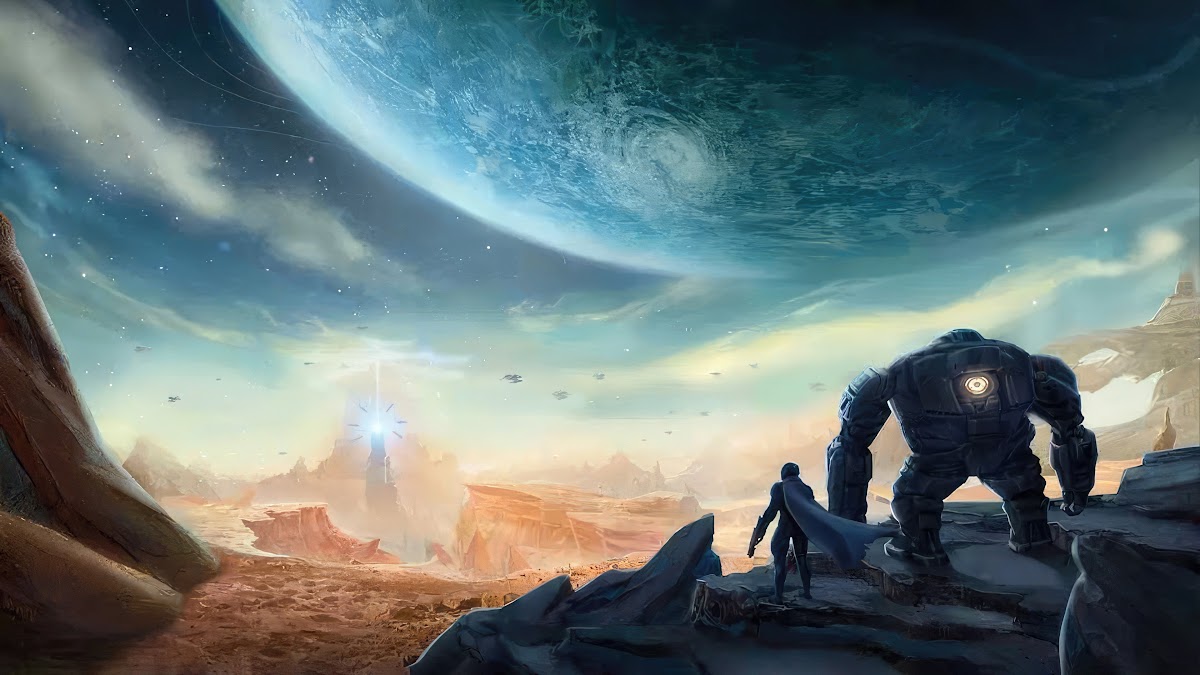 Sci-Fi, Exoplanet, Robot, Canyon, Utopia 4K Wallpaper Background with a maximum resolution of 3840x2160 px.