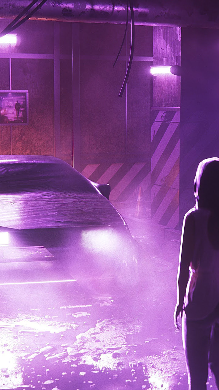 Cyberpunk, Synthwave, Neon, Car, Couple 4K Phone Wallpaper