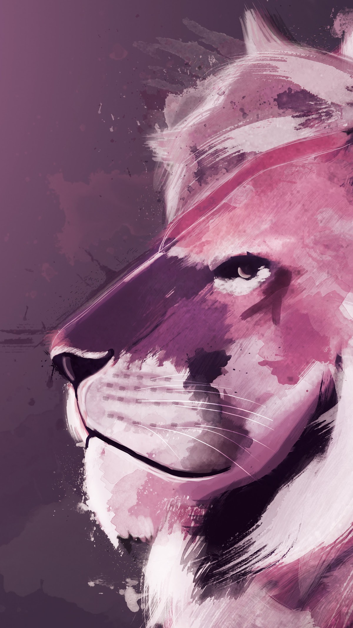 Lion, Painting, Watercolor, Pink 4K iPhone Wallpaper Background [2160x3840] Free Download
