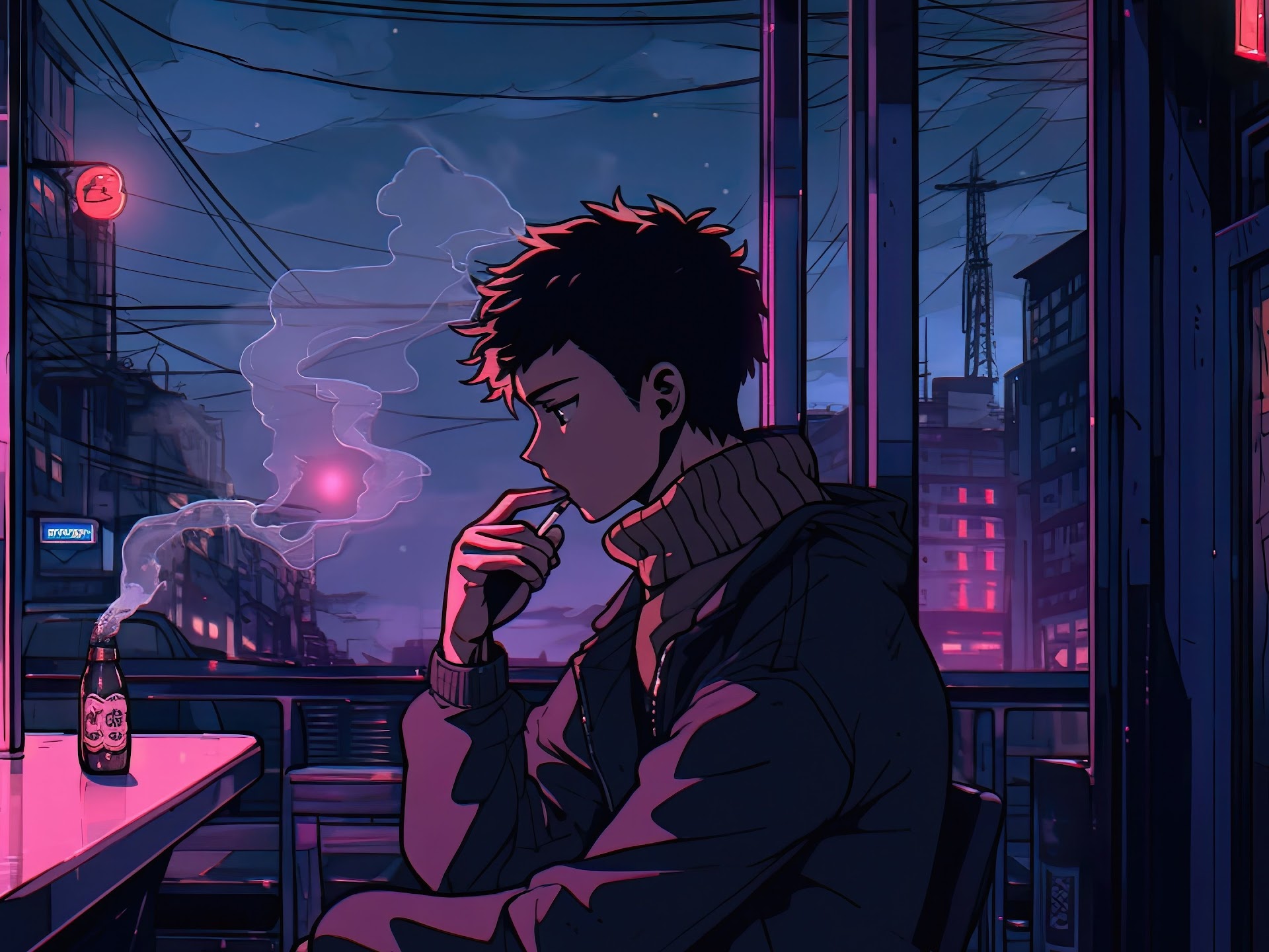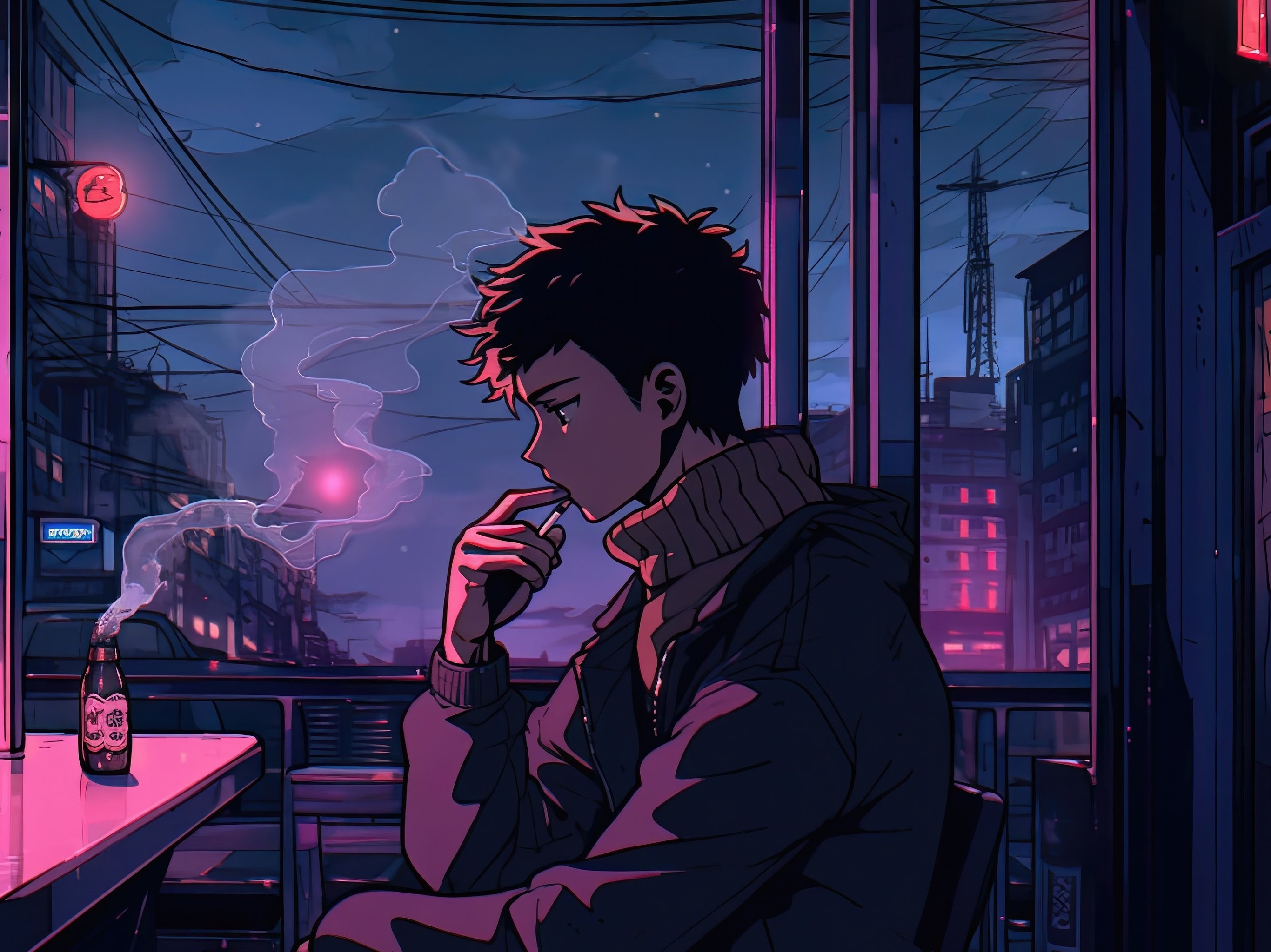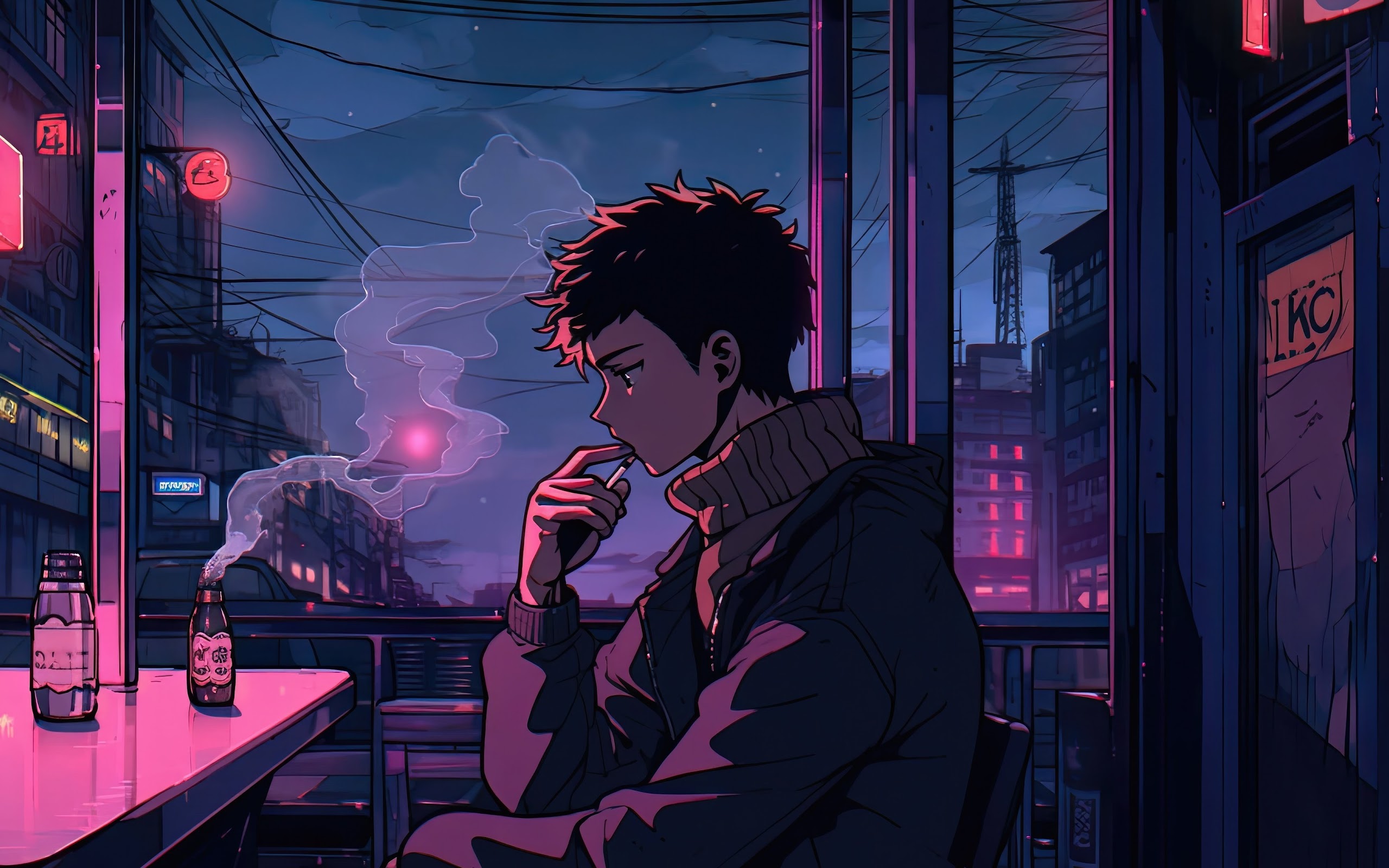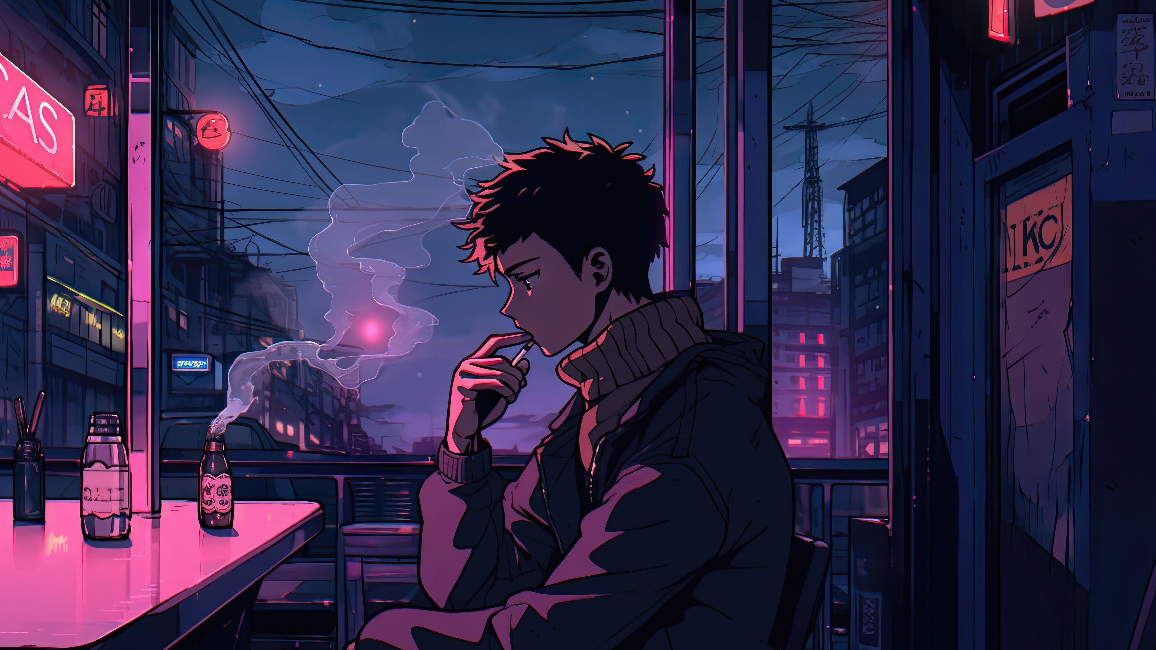 Lofi Boy In Deep Thoughts 4K Desktop Wallpaper