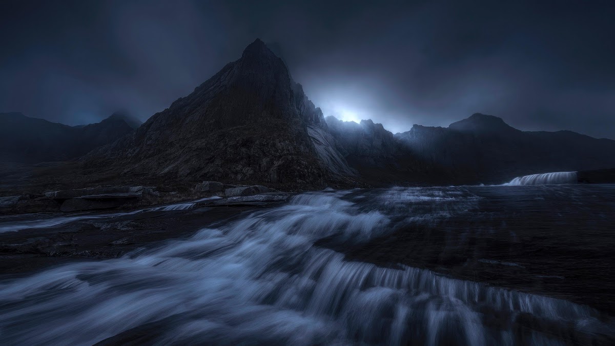 Mountains, Waterfall, Gloomy, Scotland 4K Desktop Wallpaper