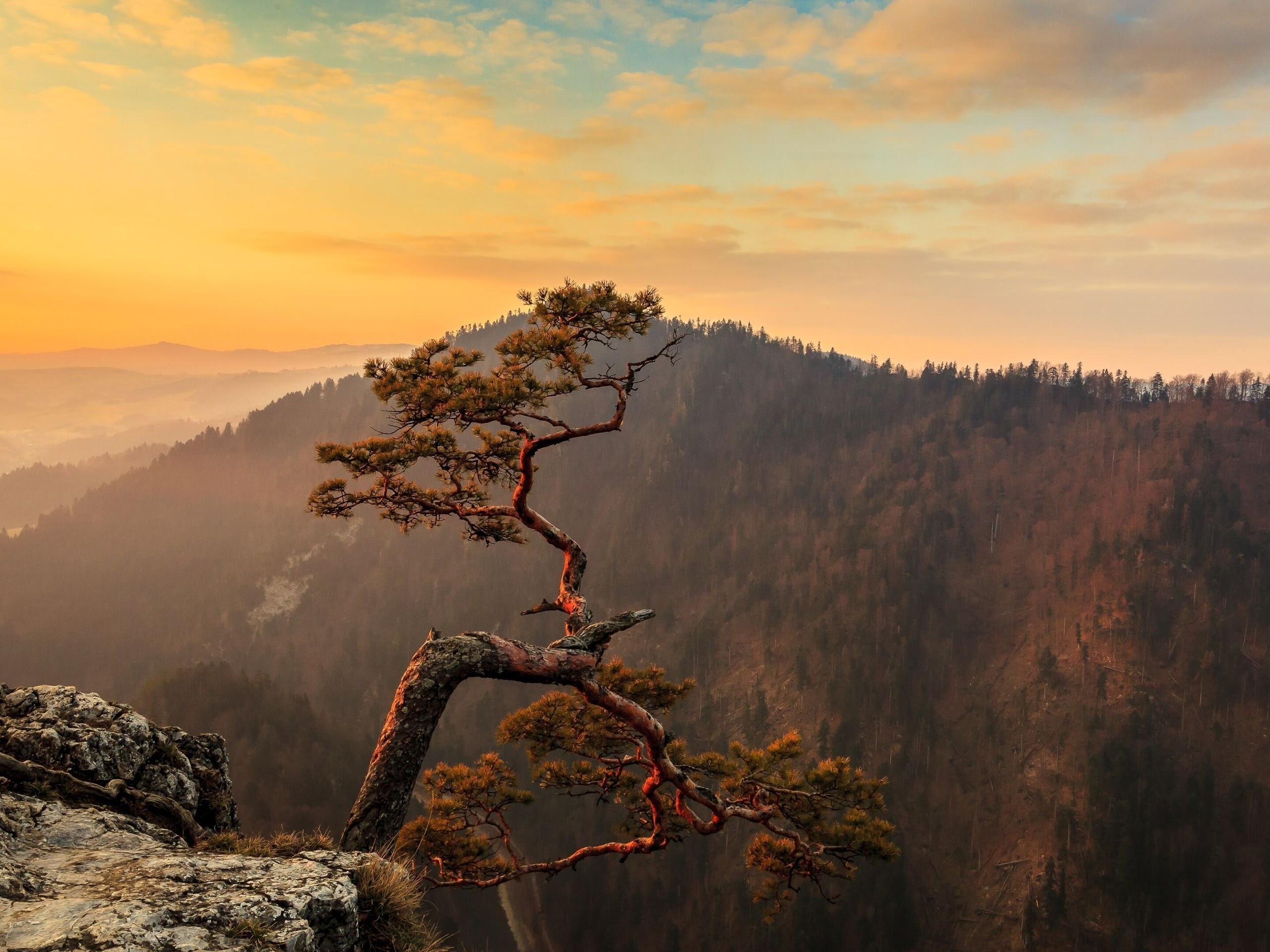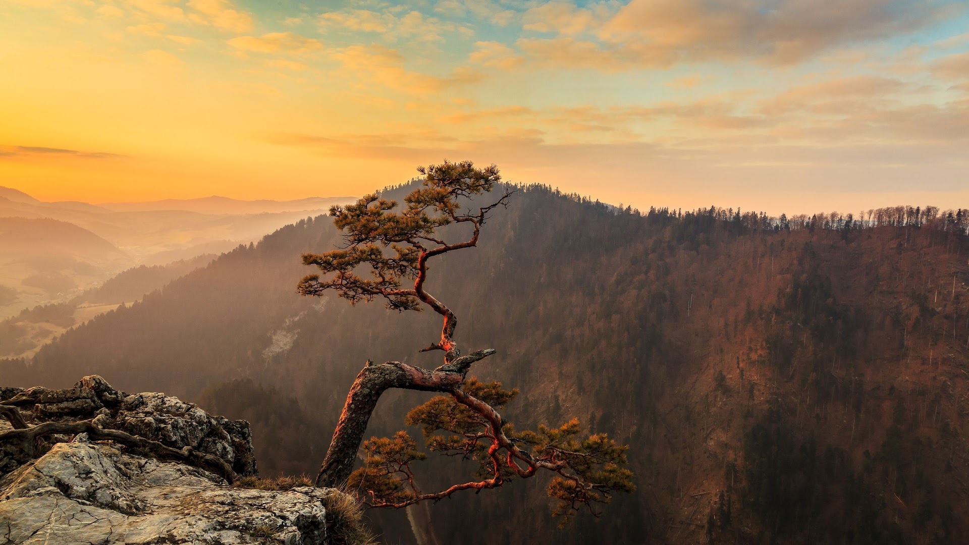 Lone Tree On Top Of Mountain   Nature 4K Desktop Wallpaper