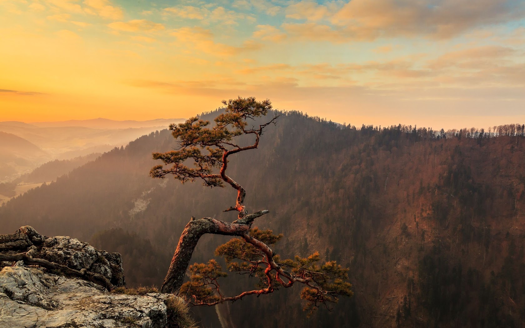 Lone Tree On Top Of Mountain Nature 4K Desktop Wallpaper