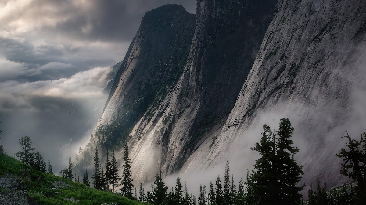 Majestic Peaks Embraced By Misty Clouds Nature 4K Desktop Wallpaper