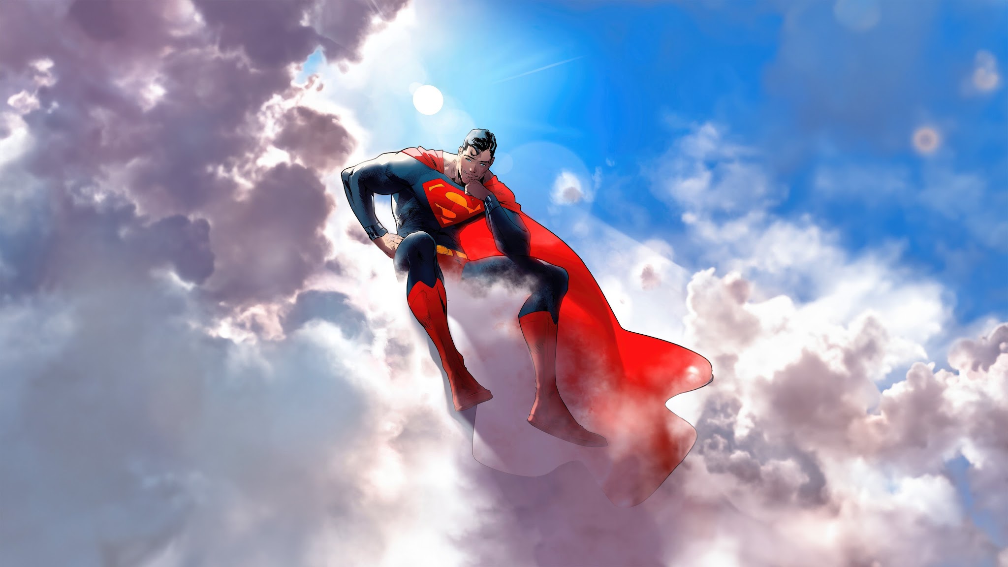 Superman, Clouds, Comics, Superhero, Art 4K Desktop Wallpaper
