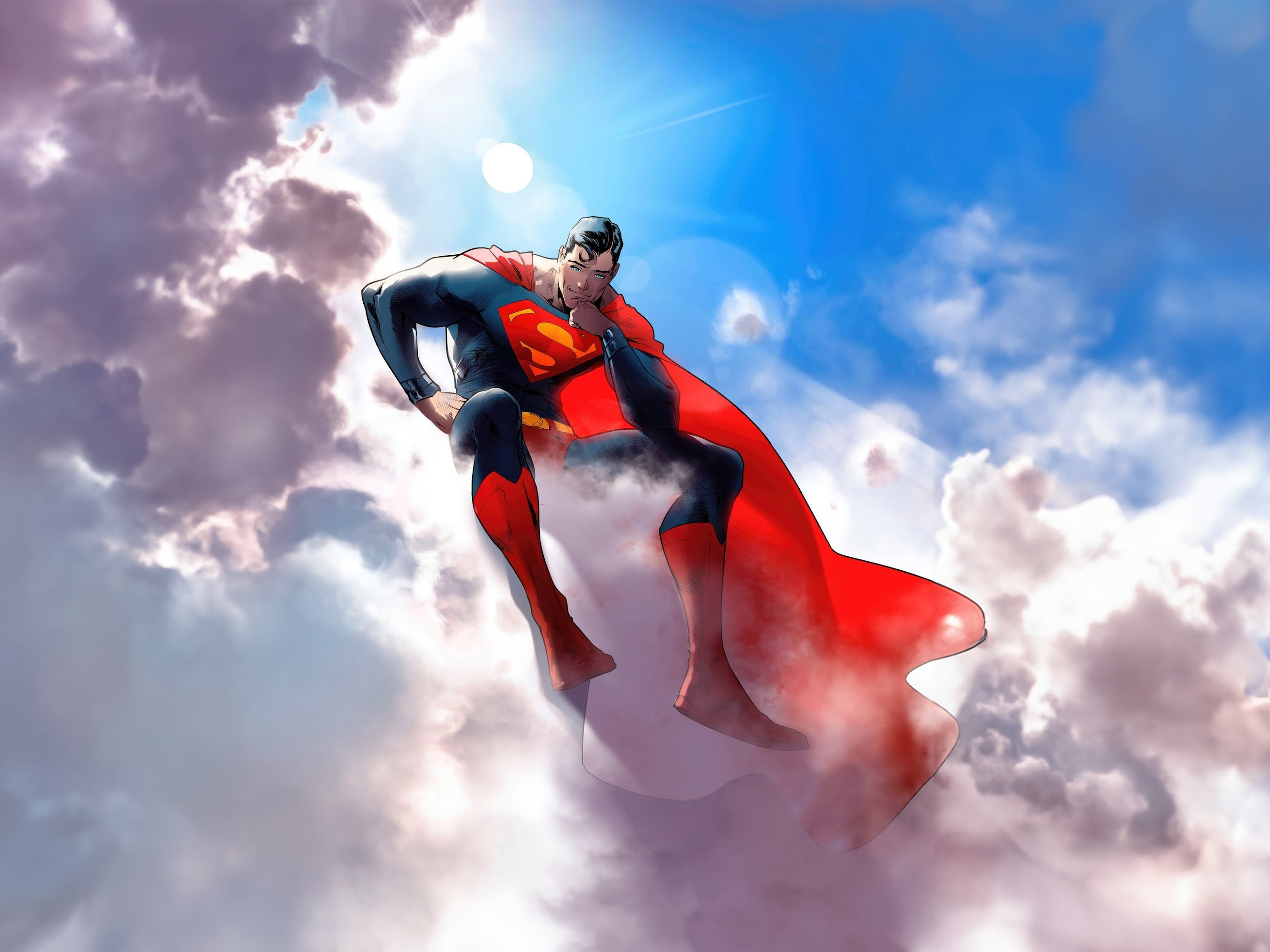 Superman, Clouds, Comics, Superhero, Art 4K Desktop Wallpaper Background [3840x2160] Free Download