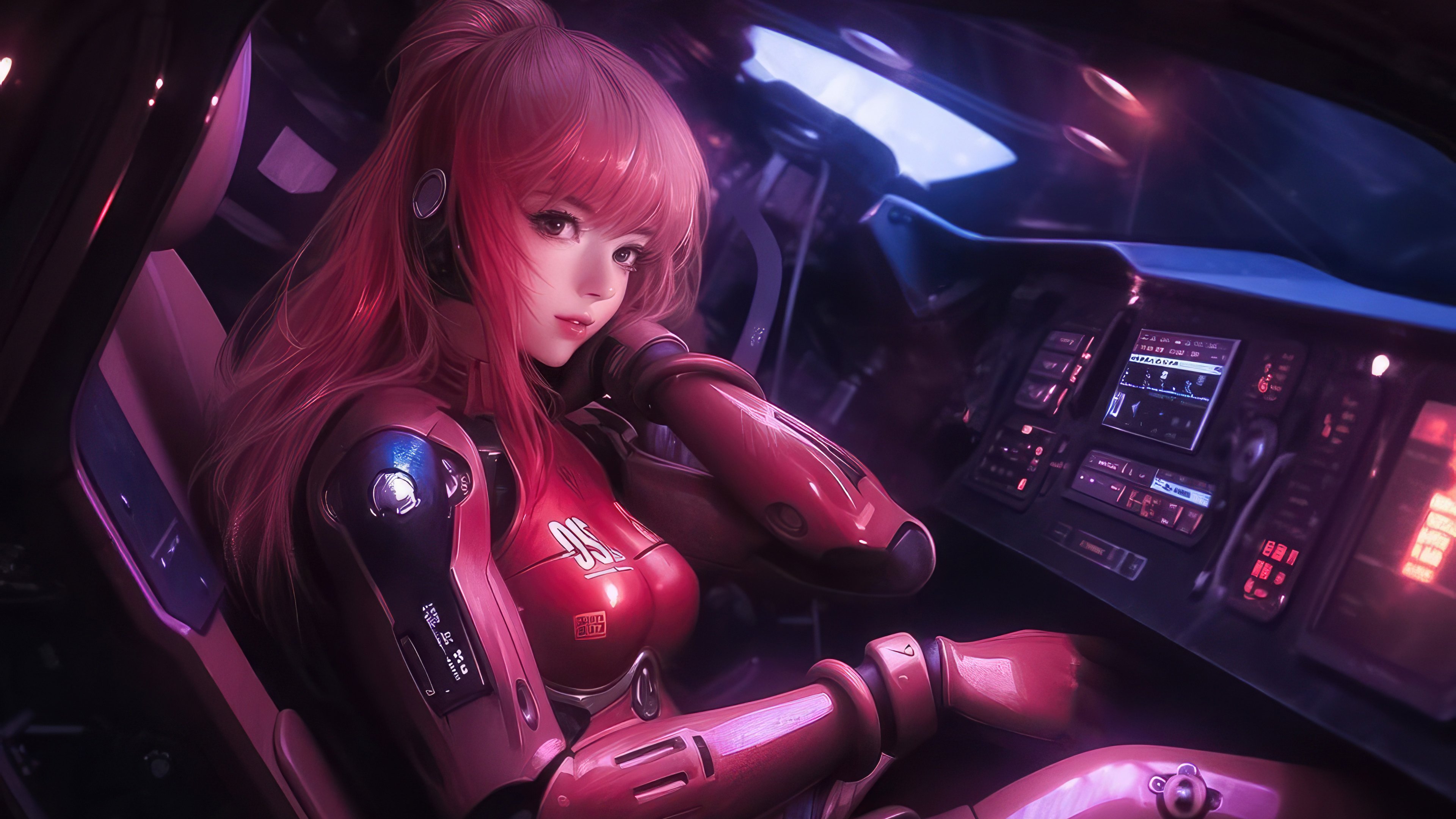 Mecha Cyberpunk Pilot 4K Desktop Wallpaper