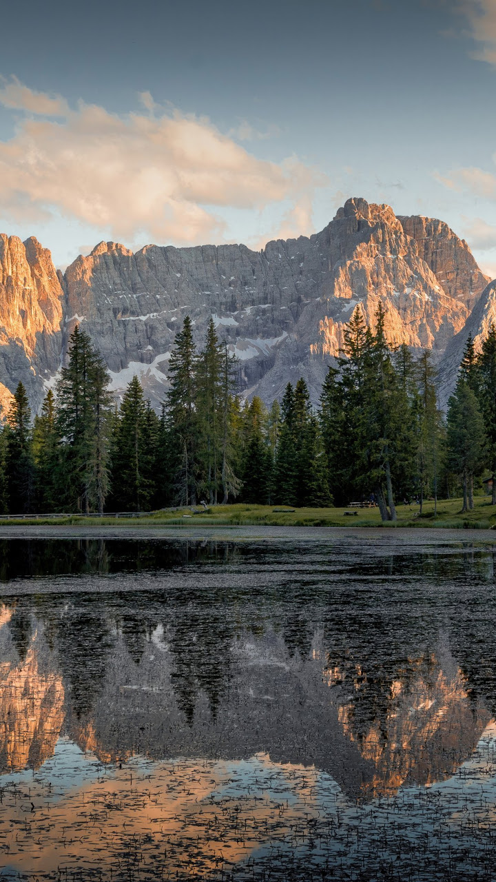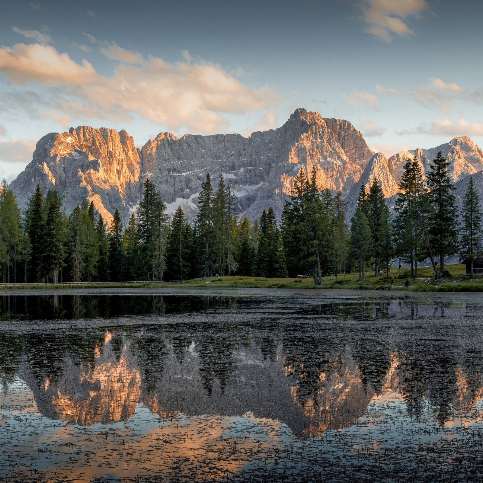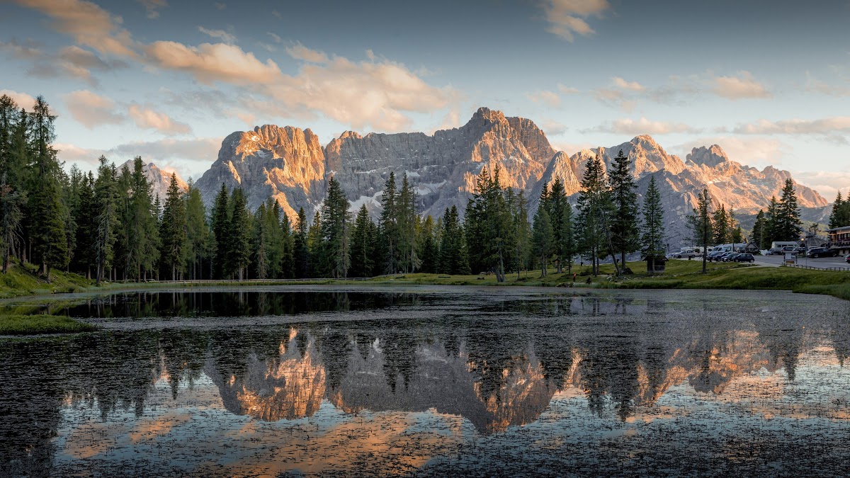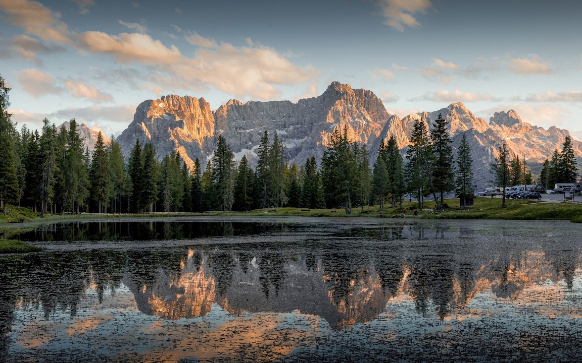 Mirror Sunset Lago D Antorno 4K Desktop Wallpaper Background with a maximum resolution of 3840x2160 px.