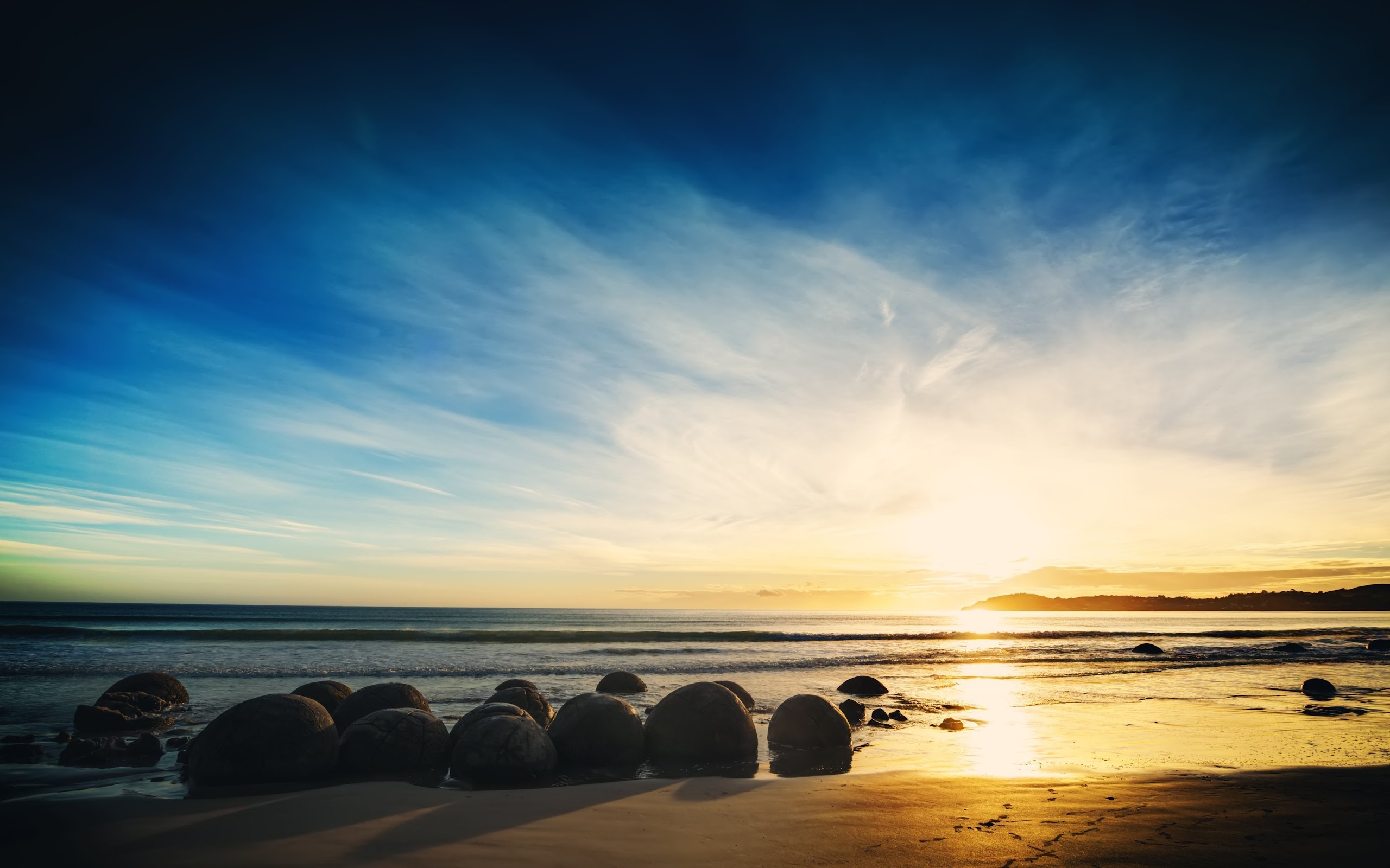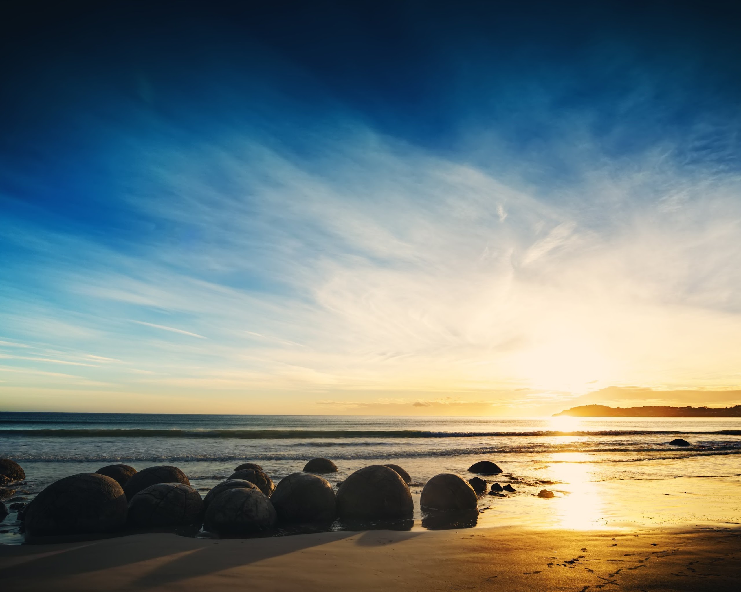 Moeraki, Boulders, Sunrise, Otago, Beach 4K Desktop Wallpaper
