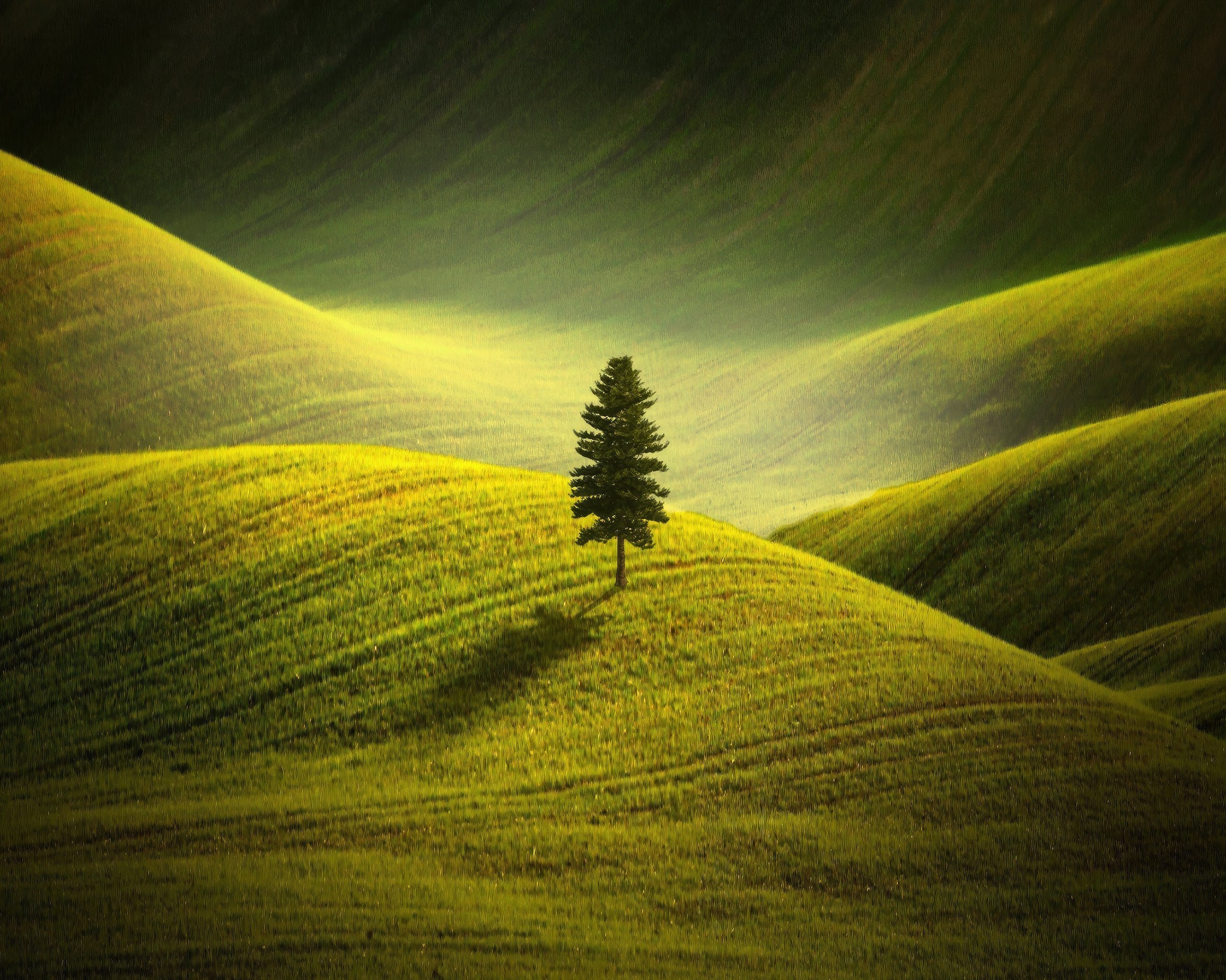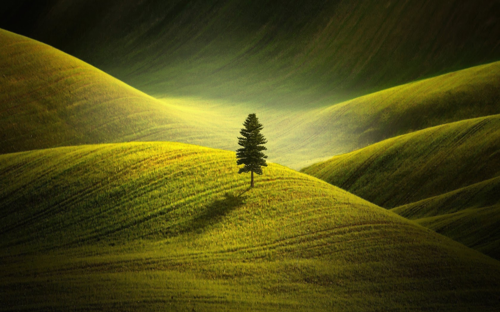 Tuscany, Rolling Hills, Cypress, Solitary 4K Desktop Wallpaper