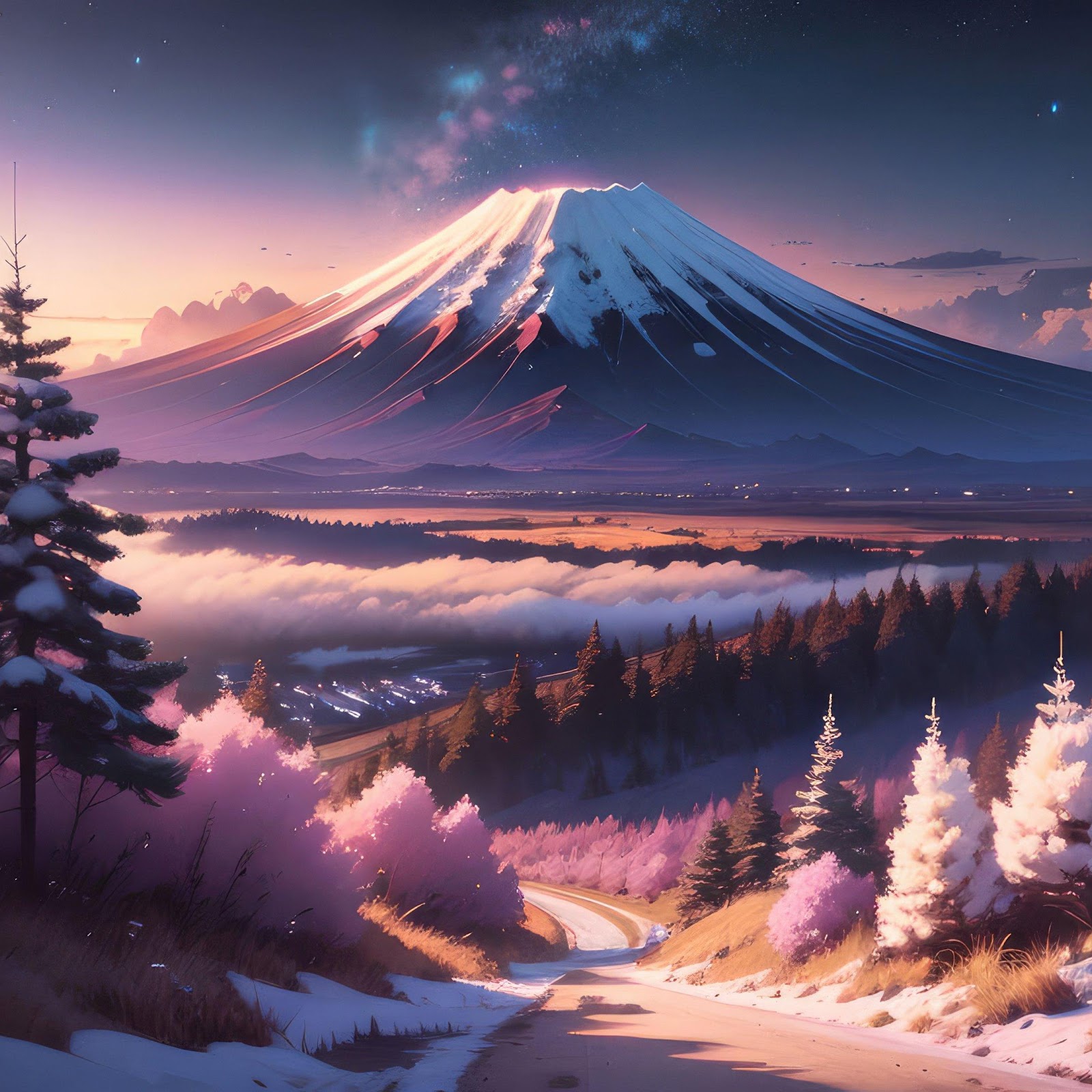 Mount Fuji Dreamy Digital Art 4K Desktop Wallpaper Background [3840x2160] Free Download