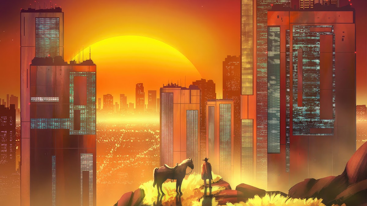 Cyberpunk, Cowboy, Sunset, Skyline 4K Desktop Wallpaper