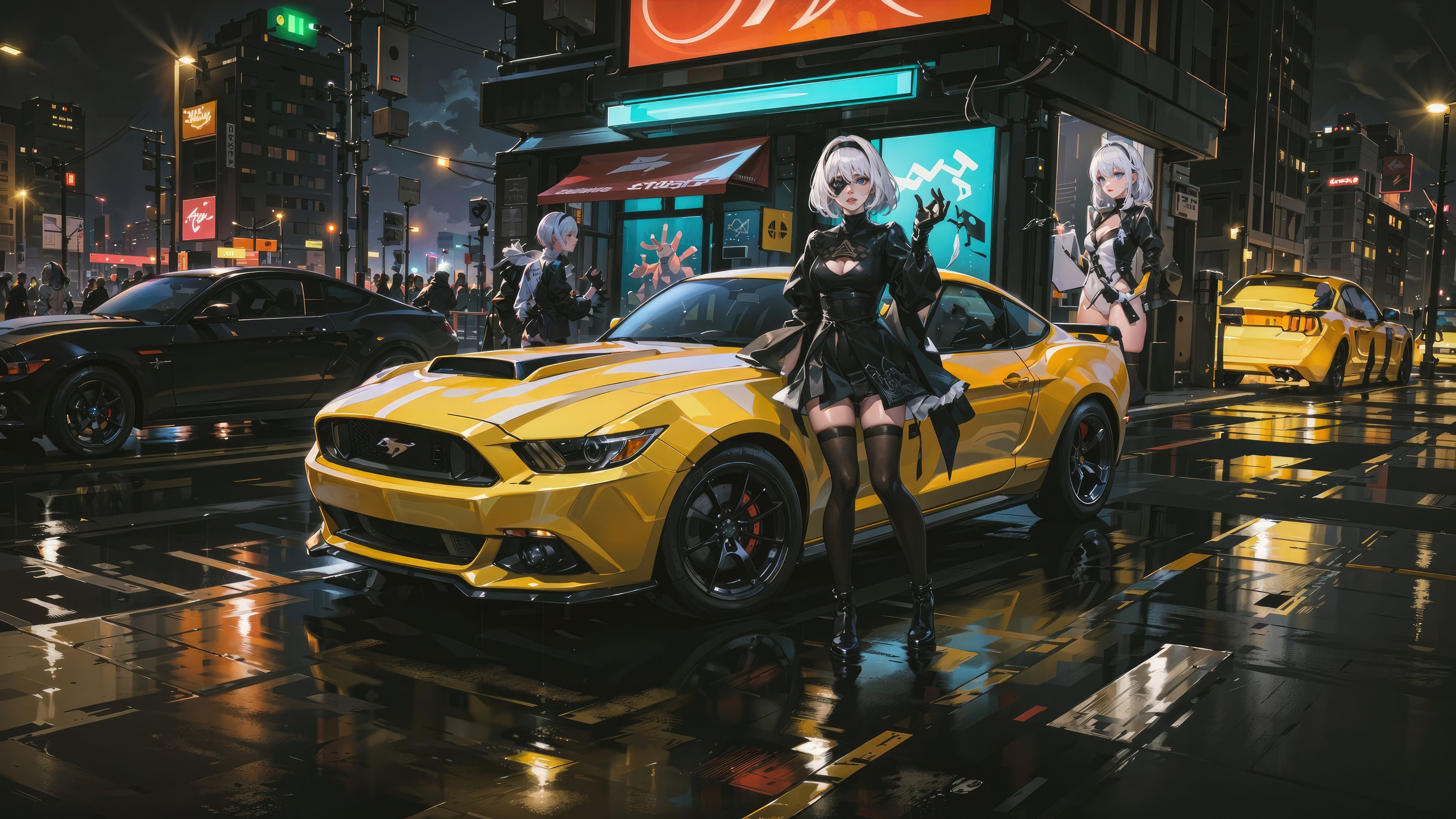 2B, Nier, Mustang, Cyberpunk, Anime 4K Desktop Wallpaper Background with a maximum resolution of 3840x2160 px.