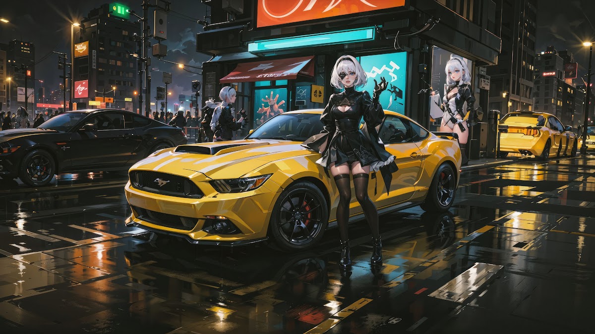 2B, Nier, Mustang, Cyberpunk, Anime 4K Desktop Wallpaper