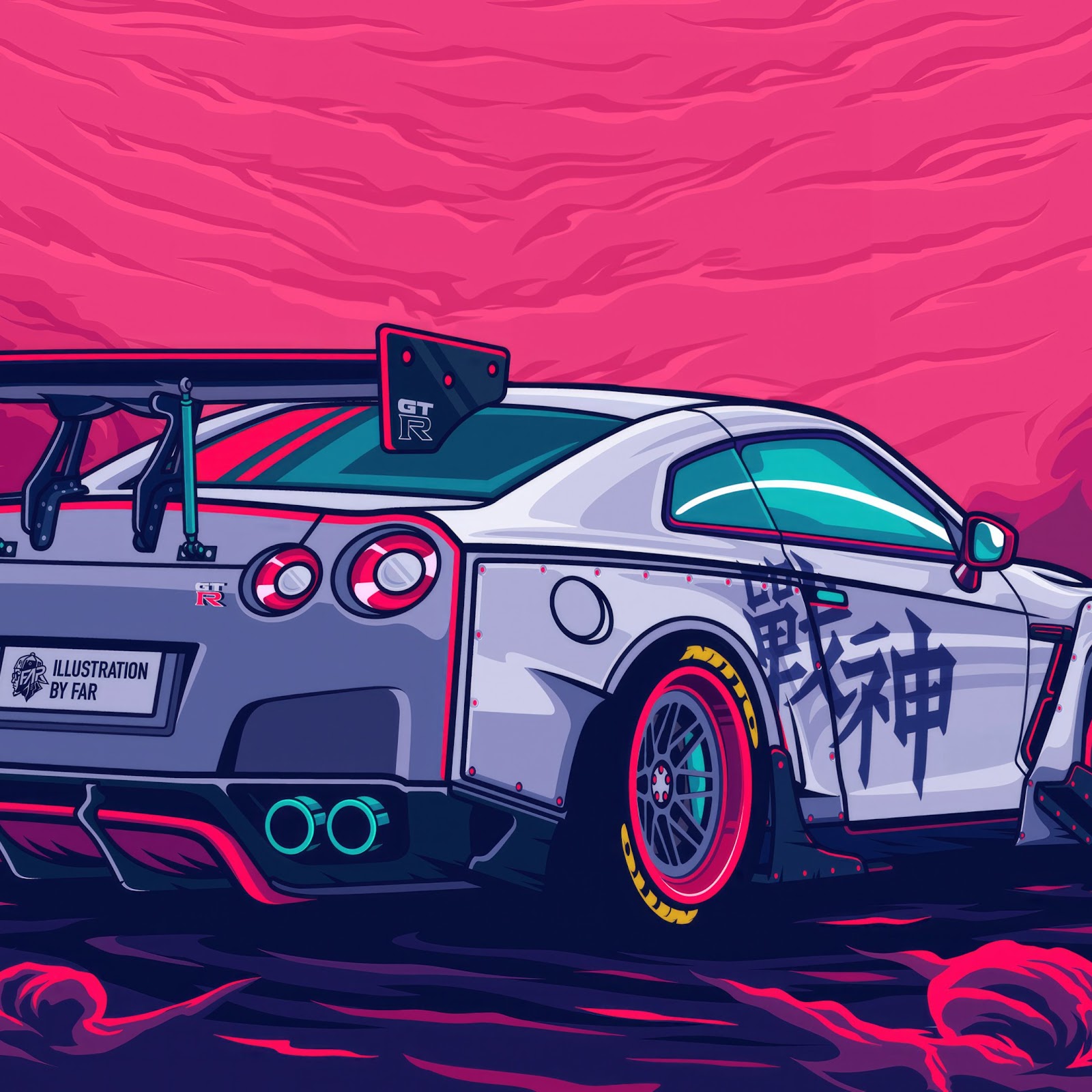 Nissan, GTR, JDM, Illustration, Car 4K Desktop Wallpaper Background with a maximum resolution of 3840x2160 px.