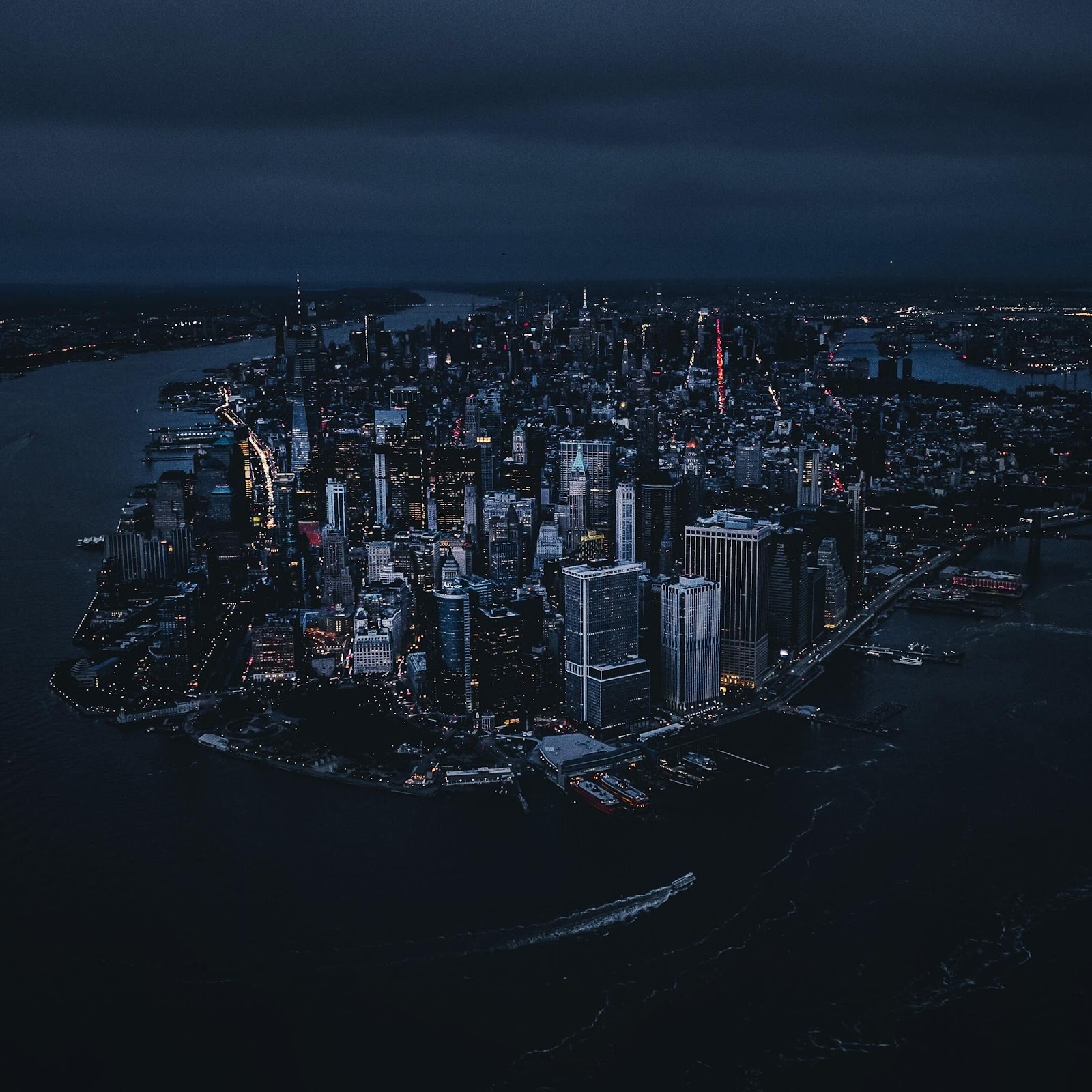 Manhattan, Skyline, Nightscape, Aerial 4K Desktop Wallpaper Background with a maximum resolution of 3840x2160 px.