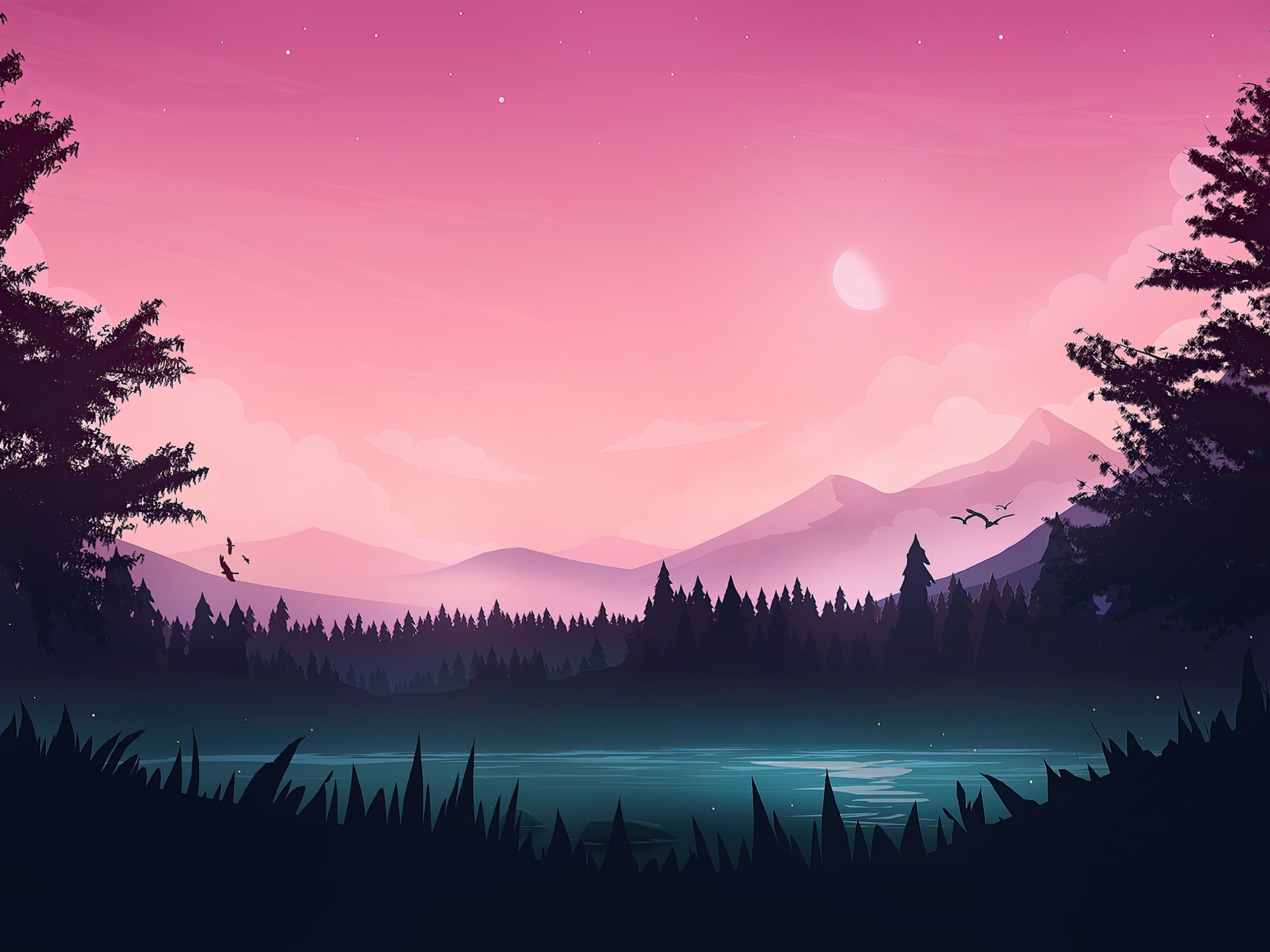Peaceful Lake Minimal 4K Phone Wallpaper