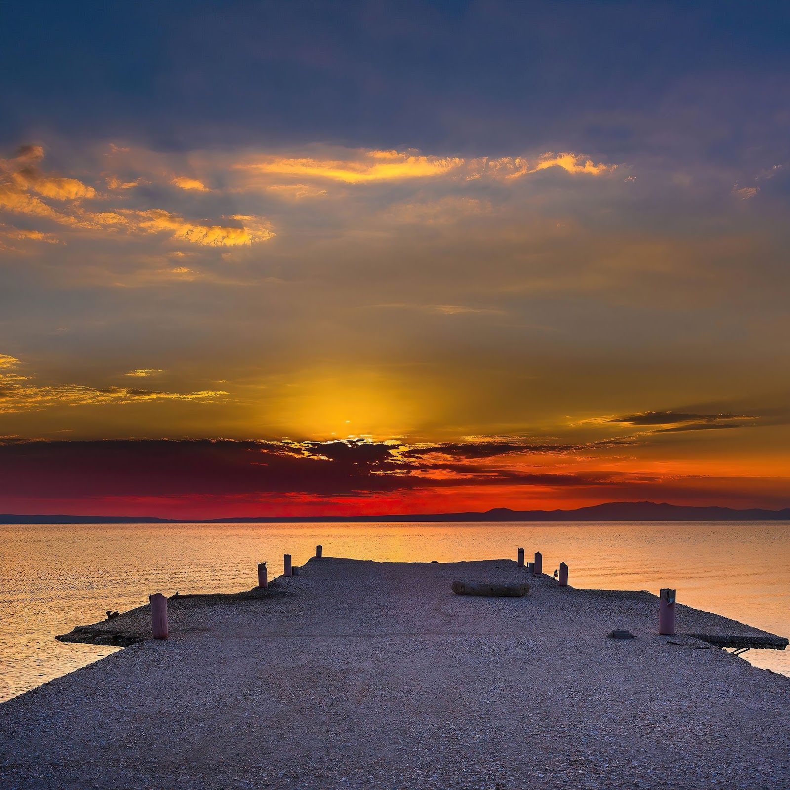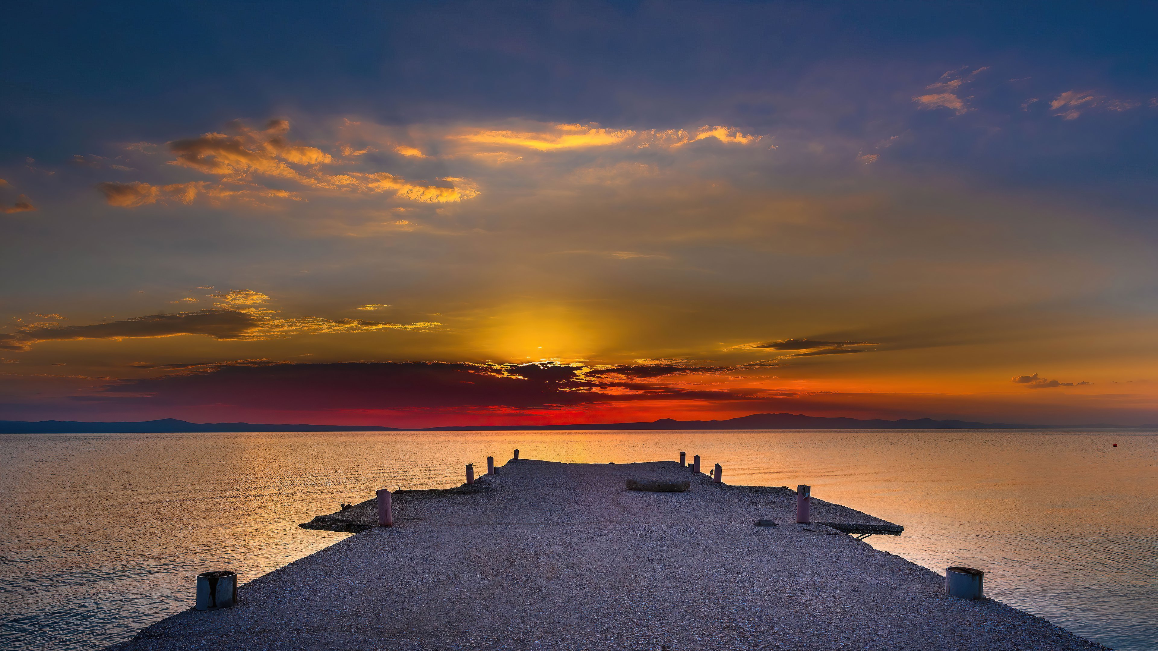 Pier Sunset Evening 4K Desktop Wallpaper Background with a maximum resolution of 3840x2160 px.
