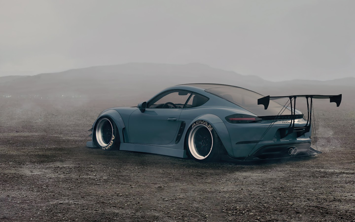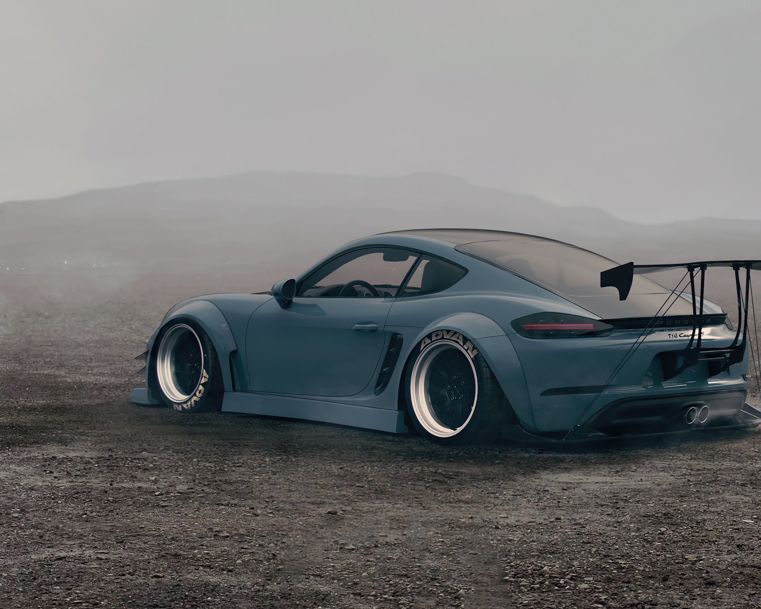 Cayman, Porsche, Tuned, Stance 4K Desktop and Mobile Wallpaper Background with a maximum resolution of 3840x2160 px.