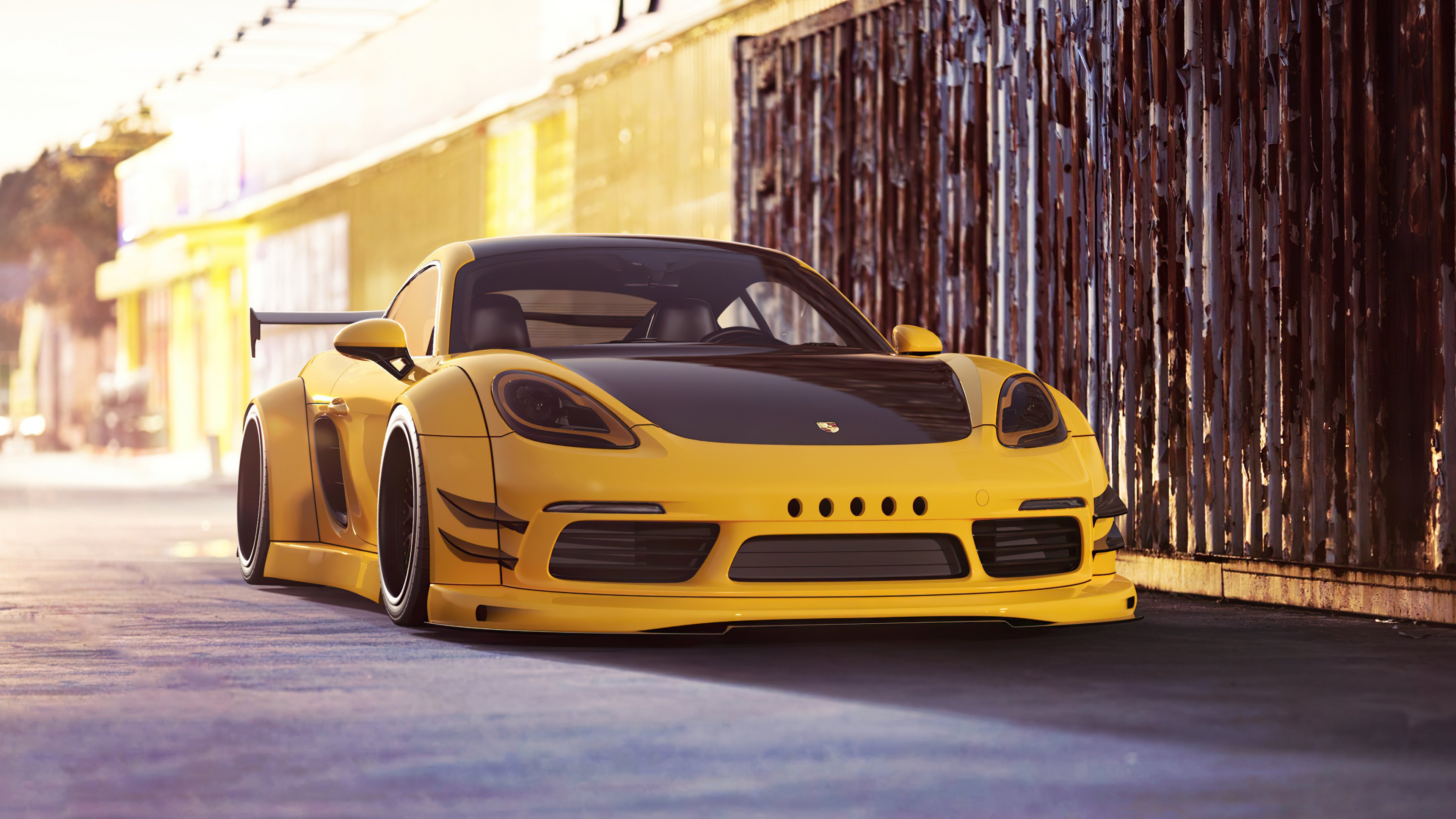 Porsche, Caymans, Yellow Car, Modified 4K Desktop Wallpaper